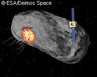 After considering six different mission studies, all aimed at increasing understanding of potentially dangerous near Earth objects (NEOs), the European Space Agency (ESA) has decided to develop a mission to actually move an asteroid. Of the six missions under consideration, three were space-based observatories for detecting NEOs, while the others proposed rendezvous scenarios. The decision to develop one of the later options was taken in light of recent advances in Earth-based observation of asteroids, according to ESA. The recommendation was made by an expert NEO advisory panel, chaired by Alan Harris of the German Aerospace Centre. Dr Harris said: 'The task has been very difficult because the goalposts have changed. When the studies were commissioned, the discovery business was in no way as advanced as it is now. Today, a number of organisations are building large telescopes on Earth that promise to find a very large percentage of the NEO population at even smaller sizes than visible today.' Therefore, the advisory panel decided to leave detection to ground-based telescopes for the time being and instead place priority on contact missions. The final choice was the Don Quijote mission, which proposes sending two spacecraft, Hidalgo and Sancho, to rendezvous with an NEO. 'If you think about the chain of events between detecting a hazardous object and doing something about it, there is one area in which we have no experience at all and that is in directly interacting with an asteroid, trying to alter its orbit,' explained Dr Harris. Under the Don Quijote mission scenario, both spacecraft are launched towards an asteroid at the same time, but by taking a faster route, Sancho will arrive some seven months before Hidalgo. Sancho would then send penetrators and seismometers to the asteroid's surface to begin observing and characterising its internal structure. Sancho will continue to observe as Hidalgo arrives, and slams into the asteroid at extreme high speed. This not only allows Sancho to collect information about the behaviour of the internal structure of the object during an impact, but also excavates some of the interior for further analysis. Following the collision, Sancho and telescopes on Earth will assess how the object's orbit and rotation have been affected. Dr Harris explains: 'When we do actually find a hazardous asteroid, you could imagine a Don Quijote-type mission as a precursor to a mitigation mission. It will tell us how the target responds to an impact and will help us to develop a much more effective mitigation mission.' The recommendations of the NEO advisory panel have been presented to representatives of other national space agencies in the hope that a joint mission could be developed around the Don Quijote concept. With such international cooperation, ESA believes that the mission could be launched within a decade.