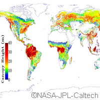 El cambio climático no muestra signos de debilidad, pero un conocimiento más profundo de la influencia de los bosques en el cambio climático y en los hábitats que acoge permitirá que la comunidad científica disponga de la información necesaria para controlar con mayor efectividad el carbono almacenado en la vegetación. Para este fin un equipo de investigadores dirigidos por la Administración Nacional de la Aeronáutica y del Espacio de los Estados Unidos (NASA) ha ideado un mapa preciso y de alta resolución de la altura de los bosques del planeta. En la revista Journal of Geophysical Research se ha publicado un artículo al respecto. El equipo utilizó 2,5 millones de mediciones con pulsos de láser emitidos desde el espacio distribuidas por todo el planeta y seleccionadas al detalle. El instrumento Sistema Geocientífico de Altimetría por Láser del ICESat («Satélite para la medición del hielo, las nubes y la elevación») de la NASA recabó datos de detección y medición de distancias por luz (LiDAR) en 2005. «Conocer la altura de los bosques de la Tierra es fundamental para la estimación de la biomasa, o la cantidad de carbono que contienen», explicó Marc Simard del Laboratorio de Propulsión a Chorro del Instituto Tecnológico de California (Caltech) e investigador principal del estudio. «Nuestro mapa se puede utilizar para mejorar los esfuerzos globales para controlar el carbono. Además, la altura de los bosques es una característica integral de los hábitats de la Tierra, sin embargo, no está bien medida a nivel mundial, por lo que nuestros resultados también beneficiarán a los estudios de las variedades de vida que se encuentran, en particular, en los hábitats boscosos.» El mapa, que posee una resolución espacial de un kilómetro, muestra los puntos más altos del dosel forestal. El equipo validó el mapa con datos generados a partir de setenta emplazamientos repartidos por la superficie del planeta. En general, cuanto mayor es la elevación, menor es la altura de los bosques. En cambio a menor latitud, mayor es la altura. Los investigadores apuntaron que su altura se reduce sobre todo en función de la distancia a los trópicos. No obstante, también hicieron referencia a una excepción en los bosques tropicales meridionales en Australia y Nueva Zelanda, donde el eucalipto llega a alcanzar los cuarenta metros. En su estudio, los investigadores añadieron a los de ICESat datos de otras fuentes para compensar la falta de datos de LiDAR, los efectos de la topografía y la cubierta nubosa. En el paquete de datos se incluyó información sobre la elevación topográfica obtenida de la Misión para la Medición de la Pluviometría Tropical de la NASA y de la base de datos WorldClim, estimaciones de la proporción del dosel arbóreo obtenidas mediante el espectrorradiómetro de obtención de imágenes de resolución moderada instalado en el satélite Terra de la NASA, y mapas de temperatura y precipitación de la misma Misión para la Medición de la Pluviometría Tropical. El equipo indicó que los datos de alta resolución sobre el clima global de WorldClim utilizados en la creación del mapa y en las labores de modelización espacial se pueden utilizar de forma gratuita. El nuevo mapa muestra que la altura de los bosques es mayor que la revelada por un mapa anterior realizado con ICESat, sobre todo en los bosques tropicales y boreales. No obstante, la altura es menor en las zonas montañosas. Los investigadores afirmaron que la precisión de este mapa nuevo no es consistente en los principales tipos de comunidades ecológicas que se dan en los bosques. Añadieron que la influencia de la actividad humana en la distribución de los bosques y en la variabilidad de la altura natural de éstos hace que se resienta la precisión. «Nuestro mapa contiene una de las mejores descripciones de la altura de los bosques globales disponible en la actualidad a escalas regional y global», aseguró el Dr. Simard. «Este estudio demuestra el enorme potencial de LiDAR espacial para sacar a la luz información nueva sobre los bosques terrestres. Sin embargo, para controlar la salud de los bosques y otros ecosistemas terrestres a largo plazo será necesario contar con nuevos satélites de observación de la Tierra.»Para más información, consulte: Journal of Geophysical Research: http://www.agu.org/journals/jgr/(se abrirá en una nueva ventana) NASA: http://www.nasa.gov/(se abrirá en una nueva ventana) Para consultar el mapa, pulse: aquí(se abrirá en una nueva ventana)
