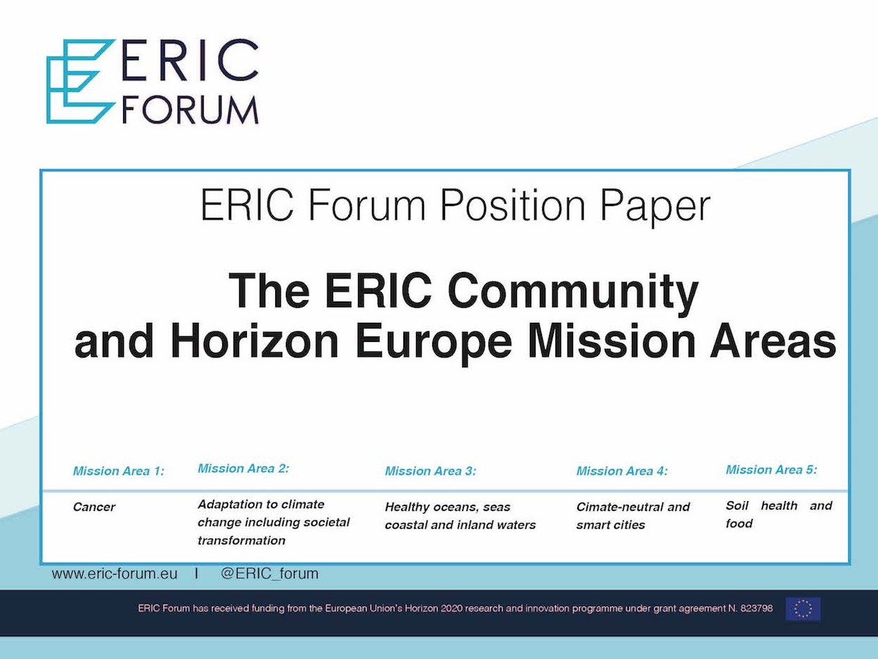 ERICs as facilitators of excellent science benefiting society The legal framework for a European Research Infrastructure Consortium (ERIC) was introduced in 2009 to facilitate the establishment and operation of large-scale research infrastructures of European interest. The first ERIC was subsequently founded in 2011, in the Netherlands. The ERIC community has been expanding ever since. Until now, 21 ERICs have been established with their respective host seats in 10 different European states. Having around 12 member countries on average, each ERIC is a truly international endeavour. The fast growth of the ERIC community in the last nine years bears testimony to the importance of the ERIC legal framework for European science and innovation. Research infrastructures aspiring to become an ERIC (currently 11 of them) must demonstrate their added value for the European Research Area (ERA) in a complex application process that – once successfully completed – leaves no doubt as to the scientific excellence of the ERIC. Each ERIC represents a leading international research organisation in their respective domain, and facilitates excellent scientific research by providing access to high-quality data and cutting-edge instrumentation. ERICs are critical elements of the ERA. The ERIC community is diverse and covers five different research domains of the European Strategy Forum on Research Infrastructures (ESFRI) Roadmap – namely energy, environment, health and food, physical sciences and engineering, and social and cultural innovation. While being diverse, ERICs are united in their vision to carry out research programmes that contribute to the development of a variety of scientific and technological fields, strengthening Europe’s global position in research and innovation, and improving the life of European citizens. The ERICs also work together within the framework of the ERIC Forum – a platform established to intensify collaboration and collectively develop responses to common challenges. Much of the science enabled by ERICs addresses the United Nations (UN) Sustainable Development Goals (SDG), tackles grand societal challenges, and contributes to research aimed at combating global threats such as the COVID‑19 pandemic. This paper further describes how the ERIC Forum together with four preparatory ERICs contribute to the mission areas currently being developed in preparation for the next European Union Research and Innovation Framework Programme, Horizon Europe. Click here to read the position paper: bit.ly/30GHBiV