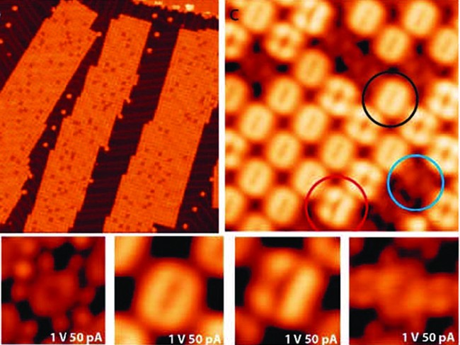 The design of molecular systems on surfaces is crucial for the fundamental understanding of electronic transport. The development of molecular electronics, spintronic devices and quantum computation will only happen along with the precise control over the spin texture and its interaction with the surroundings. The Kondo effect is a phenomenon that has attracted much attention because of its potential in single-molecule spintronic applications. The Kondo effect results from the interaction between spin of magnetic impurities and the conduction electrons, resulting in a change of electrical conductivity below certain temperatures. This phenomenon has been extensively investigated on surfaces, particularly in metal macrocycles; however, the magnetism of lanthanide coordination complexes are largely unexplored. Researchers at the Nanoarchitectonics on Surfaces Group at IMDEA Nanociencia, led by Dr. David Écija, have recently published their work on lanthanide-porphyrin species in the RSC journal Nanoscale. In their publication, researchers prepared dysprosium (Dy) porphyrins on a gold surface and studied their Kondo effect. Porphyrins are macrocyclic organic compounds with interest as pigments, catalysts and in molecular electronics. The researchers were able to switch off the Kondo resonance by removing one hydrogen atom of the macrocycle through tip-induced voltage pulses with submolecular precision. The work led by Dr. Écija combines the on-surface design of 2D reticular porphyrin nanomaterials, coordination chemistry of lanthanides, low temperature scanning tunneling microscopy and spectroscopy with theoretical DFT calculations. The pre-metallated species featuring this Kondo resonance can be laterally manipulated to assemble artificial Kondo lattices. This research result funded by the European Research Council (ERC) manifests the potential of tip-induced coordination chemistry for spintronics that takes advantage of the inherent magnetic properties of f-block elements. The publication is available here(opens in new window).