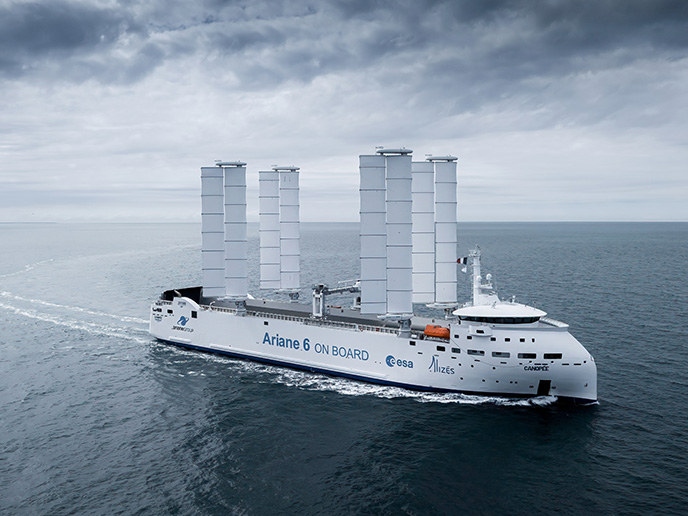 L’industria del trasporto marittimo produce il 14 % delle emissioni di gas serra del settore dei trasporti dell’UE(si apre in una nuova finestra). Un inedito sistema di propulsione eolica sviluppato dal progetto WINNEW potrebbe aiutare l’industria a ridurre questa percentuale. Il progetto prevede che l’installazione delle sue vele alari di 363 m2 sulle navi commerciali comporterà una riduzione del 45 % del consumo di carburante e delle emissioni di CO2. Installabile sia sulle navi nuove che su quelle esistenti, la soluzione potrebbe aiutare le navi a ridurre le spese operative fino al 30 %. Nell’estate del 2023, le vele alari Oceanwings sono state installate e testate su Canopée, una nave adibita al trasporto di parti del razzo Ariane tra l’Europa e lo spazioporto nella Guyana francese. La combinazione di propulsione diesel e assistenza eolica su questa nave rappresenta un grande passo avanti nella decarbonizzazione del trasporto marittimo industriale, che ha portato il progetto a vincere lo «Ship of the Year Award» per il 2023.