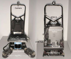 Il progetto PELOTE ha studiato a fondo nuovi metodi e tecnologie per migliorare la collaborazione tra robot e uomo, in modo da incrementare le prestazioni di questi sistemi eterogenei. Uno dei principali risultati del progetto è stato il sistema di navigazione personale (PeNa) per ambienti interni, che offre un efficace coordinamento di sistemi non viventi ed esseri umani in un ambiente comune. Il più importante aspetto innovativo del sistema PeNa è il fatto di permettere di localizzare gli esseri umani in un ambiente interno. Si tratta di un sistema autonomo, che per la localizzazione non richiede infrastrutture. Per la localizzazione viene usato l'approccio di navigazione stimata, che consente di stimare una posizione sulla base della situazione previamente determinata e un metodo di localizzazione basato su mappe. L'hardware include batterie, convertitori di energia, SiLMU (Stride Length Measurement Unit), giroscopio a fibre ottiche, bussola, scanner a laser SICK, e un laptop. Tutto l'hardware è installato nella parte posteriore, e il laptop installato nella parte anteriore funge anche da display per l'interfaccia utente. Il prototipo sviluppato permette la localizzazione degli esseri umani in un ambiente interno con errore vincolato. Il PeNa può essere usato per includere esseri umani in un sistema telematico di entità ibride. L'operatore ha quindi la possibilità di controllare gli umani come se fossero robot telecomandati. Il sistema ha importanti applicazioni potenziali, in particolare in operazioni di salvataggio, in cui il successo delle operazioni dipende da un efficiente coordinamento di gruppi eterogenei. Un'altra importante area applicativa, oltre a quella dei servizi di localizzazione, concerne i sempre più diffusi sistemi intelligenti in ambienti viventi. Il concetto progettuale di base di PeNa offre una descrizione virtuale dell'ambiente reale con una notevole quantità di oggetti. Un tale ambiente può operare come interfaccia per controllare qualsiasi dispositivo con una varietà illimitata di applicazioni (robot di servizio, sistemi domotici, controllo dei sistemi di sorveglianza). Per maggiori informazioni, cliccare: http://labe.felk.cvut.cz/~pelote/(si apre in una nuova finestra)