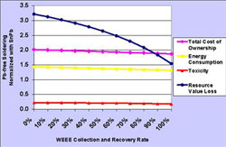 Europäische Verordnungen und die Nachfrage am Markt regen eine globale Bewegung in Richtung des bleifreien Löten in der Elektronikindustrie an. Daher hat das EU-finanzierte EFSOT-Projekt die Förderung von zuverlässigem, effizientem und nachhaltigem bleifreien Löten übernommen, die auch die Wettbewerbsfähigkeit verbessert. Firmen und Institute erforschen wissenschaftliches und technologisches Material und arbeiten an Themen zu neuen fortschrittlichen bleifreien Anwendungsmöglichkeiten. Gleichzeitig wurden Auswirkungen der Substanz, Verfahrensalternativen und Entwicklungen auf die Umwelt, Toxizität und Ressourcen bewertet. Mit zunehmender Integration der bleifreien Lösungen kann die Industrie Werkstoffe und Verfahren mit den besten technischen Anforderungen auswählen, die die niedrigste Beeinflussung der Lebensdauer haben, und weniger Ressourcen benötigen. EFSOT hat eine Bewertung der Auswirkung des bleifreien Lötens in der Elektronikindustrie auf die nachhaltige Entwicklung vorgelegt. Sie spezifizierten die nachhaltige Entwicklung hinsichtlich giftiger Abfälle, Energieverbrauch, der zur Verfügung stehenden Metalle, Kosten und einer Beschaffung verbrauchter Ressourcen für das Löten. Zusätzlich wurden neuen Methoden eingeführt die die besonderen Ansprüche der nachhaltigen Entwicklung berücksichtigen. Man entdeckte, dass bleifreies Löten das giftige Potenzial der Elektro- und Elektronik-Altgeräte und der gedruckten Schaltungen am Ende des Lebenszyklus vermindert. Ferner zeigt ein neuer Wirkungsansatz, dass die Verwendung von Wismut die Wirksamkeit des Abbaus erhöht, aber die Öko-Effizienz des Lötens senkt. Daten bezüglich der Leistungsfähigkeit der Recyclings- und der Verhüttungsinfrastruktur in Europa stammten aus einer eingehenden Untersuchung. Die Ergebnisse halfen bei der Berechnung des künftigen Metallverbrauchs in bleifreien Loten im Vergleich zum konventionellen Löten. Eine weitere Steigerung der globalen Sammel- und Recyclingraten der Elektro- und Elektronik-Altgeräte ist erforderlich. Das gleiche gilt auch für Verbesserungen der Recyclingleistung von Zinn und anderen Metallen.