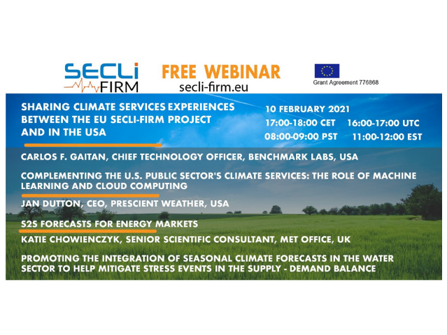 Free webinar: Sharing Climate Services experiences between the EU SECLI-FIRM project and in the USA