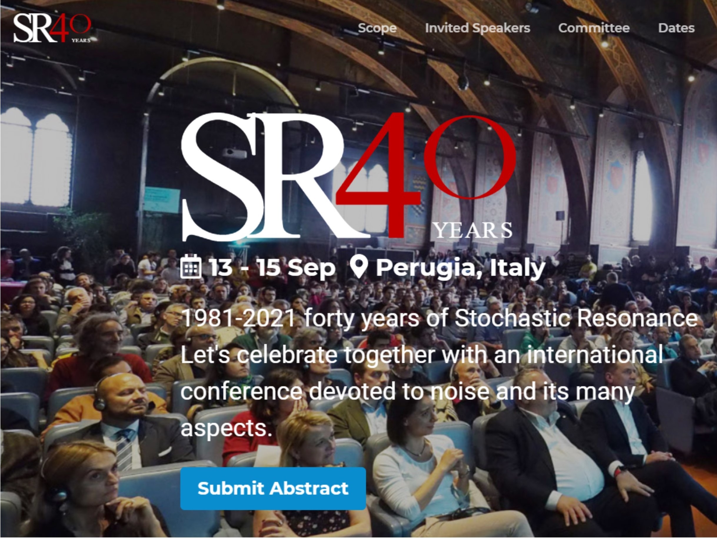 SR40 is an international conference devoted to all phenomena associated with noise, in general and to Stochastic Resonance, in particular. SR40 aims to bring together leading academic scientists, researchers and research scholars to exchange and share their experiences and research results on all aspects of Noise and Fluctuations, providing a premier interdisciplinary platform for researchers, practitioners and educators to present and discuss the most recent innovations, trends and concerns.