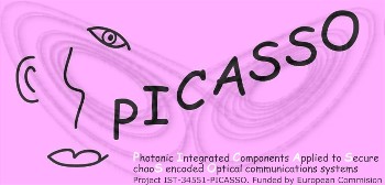 The ultimate goal of PICASSO is the development of photonic components and subsystems to build chaos-based optical communication systems. Within the framework of the project, monolithic and hybrid photonic integrated circuits will be designed and developed for the realization of chaotic transmitters and receivers. Extensive security testing, verification and calibration of the chaos encoded communication system will be performed. Different types of transmitter/receiver pairs will be fabricated and the validity of the security assumptions will be proved experimentally. Fully functional transmitter and receiver modules will be developed at four adjacent wavelengths of the ITU grid (100 GHz spacing) in the C band of the telecommunications window operating at 2.4 and 10 Gb/s. Compatibility with the existing infrastructure will be exhaustively tested and possible interactions between chaos encoded channels and conventional neighboring channels will be investigated.