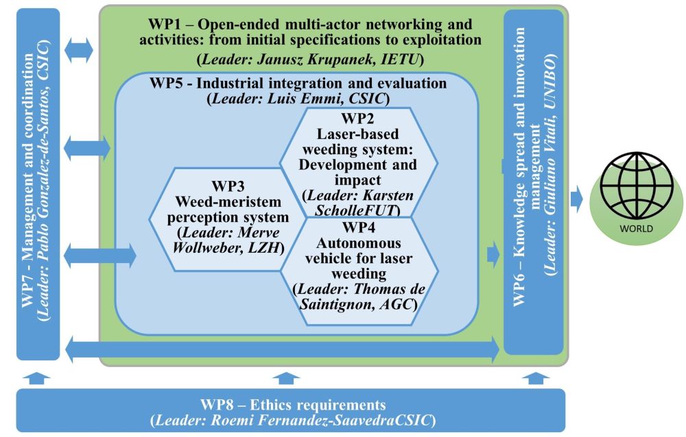 The action resulted in several subsystems that achieved significant performance indicators independently and showed potential for individual exploitation. However, the integrated weeding system was challenging to characterise because more variables than initially planned had to be considered, and different technical and agricultural issues that arose at the end of the project made field tests hard to conduct: low reliability of some subsystems and the seasonal nature of agriculture.