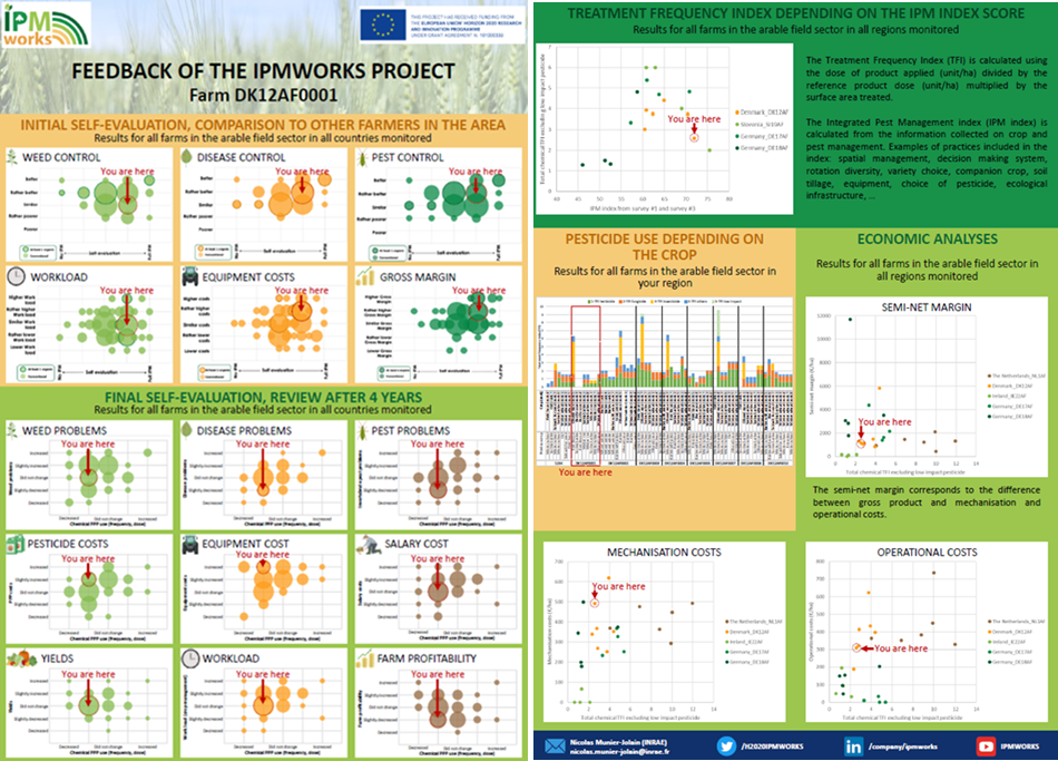 Three surveys were conducted among IPMWORKS farmers. A first survey collected information about IPM strategies and pesticide use, and a self-assessment of economic performances. This survey demonstrated that being aware of IPM and combining solutions in a holistic IPM-based strategy tends to reduce the reliance on pesticides. A second survey collected details of cropping systems to compute indicators of pesticide use and impacts, of workloads and of farm profitability. This provided evidence that those farms who succeeded in reducing pesticide use through holistic IPM had similar profitability indicators to other farms of the region, more reliant on chemicals for pest management. Finally, a last survey assessed progresses made in IPM adoption during the course of the project, and concluded that the reduction in pesticide use had no negative impact on the farmer’s assessment of yields and profitability (and often did not imply any increase in workload, with differences across sectors). These results clearly support the conclusion that reducing pesticide use and pesticide impact through holistic IPM is possible without impairing farm productivity and profitability.