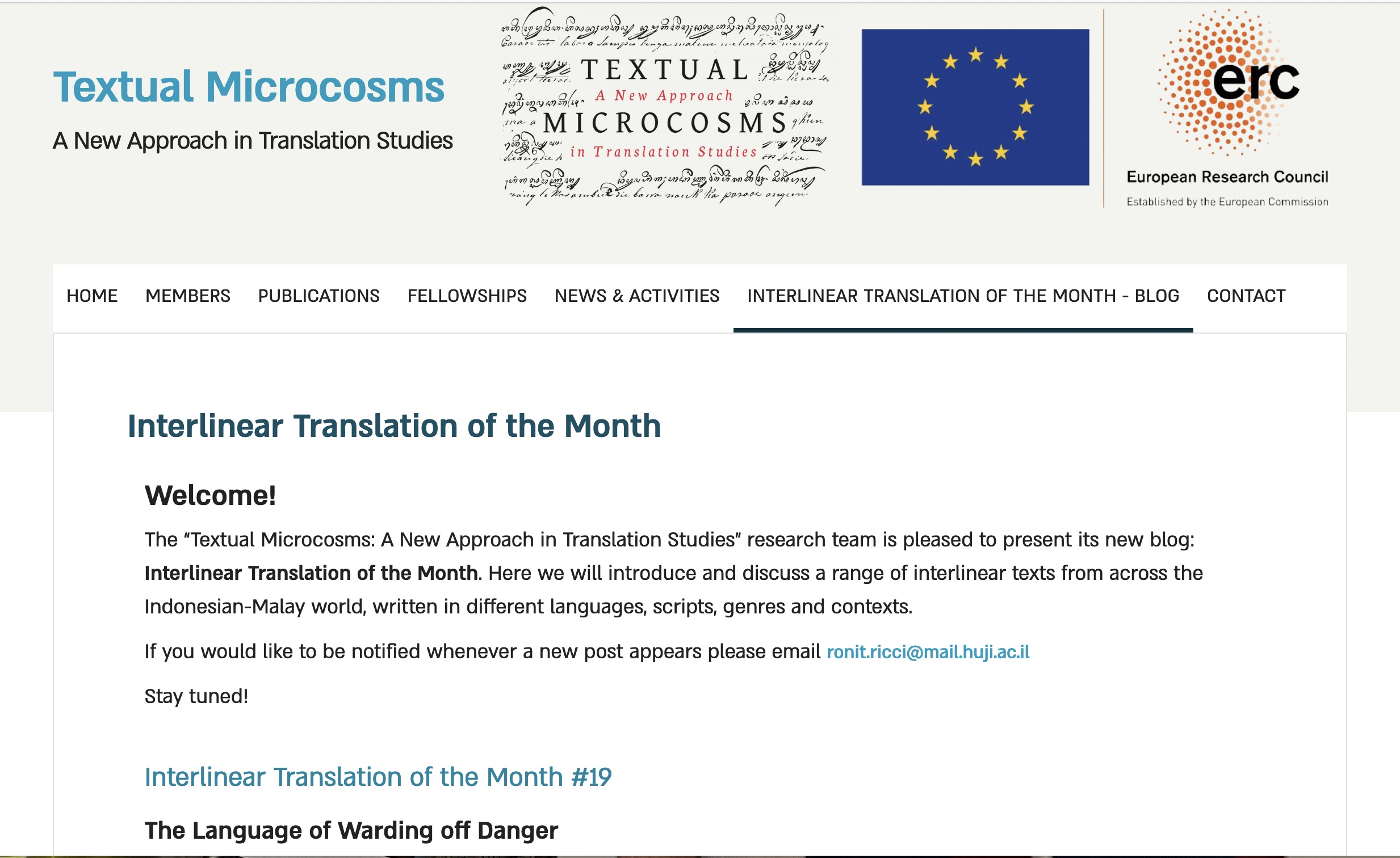 international conferences, workshops, and seminars, as well as local ones. We are working to publish the results of our research as journal articles and also on our monthly blog, “Interlinear Translation of the Month.”