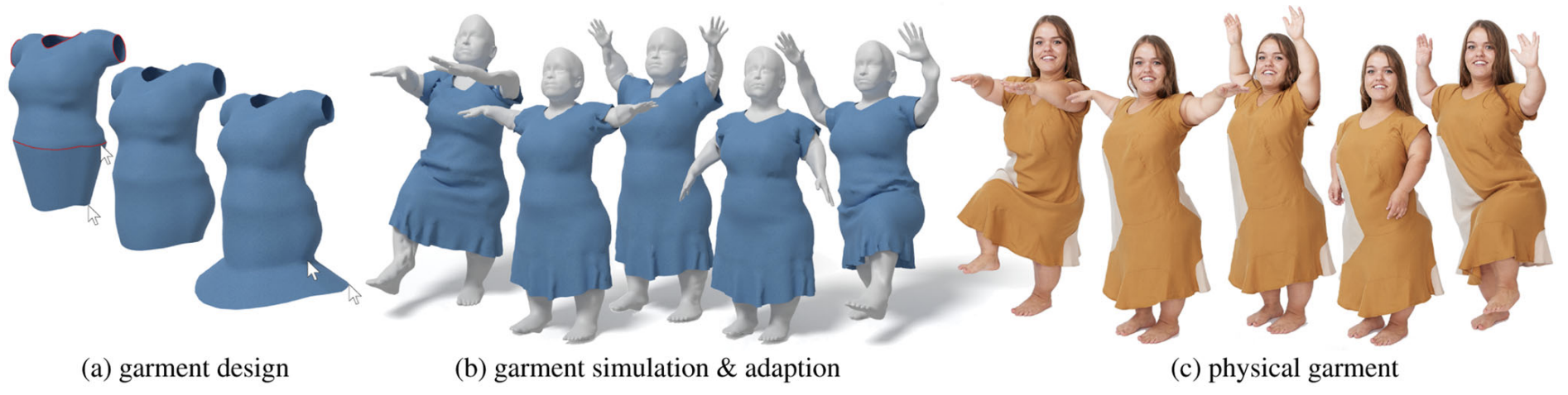 To enable the achievements of the milestones above, we have developed a number of algorithms for digital geometry processing and human body modeling that constitute standalone contributions. We have developed methods for shape matching and mapping between 3D shapes, which we require to be able to register different poses of a human body. This is a fundamental tool of geometry processing, and in particular, such registration and mapping are necessary for the modeling of garments that fit the wearer in various poses and motions. We have also developed novel methods for human pose and motion modeling, taking advantage of modern machine learning techniques. Understanding the dynamics of the human body shape helps us create algorithms for garment modeling that accommodate these dynamics. Finally, we have been studying the geometry of surfaces and fabrication of 3D surfaces out of 2D sheets by means of developable geometry, which is a fundamental component of clothmaking.