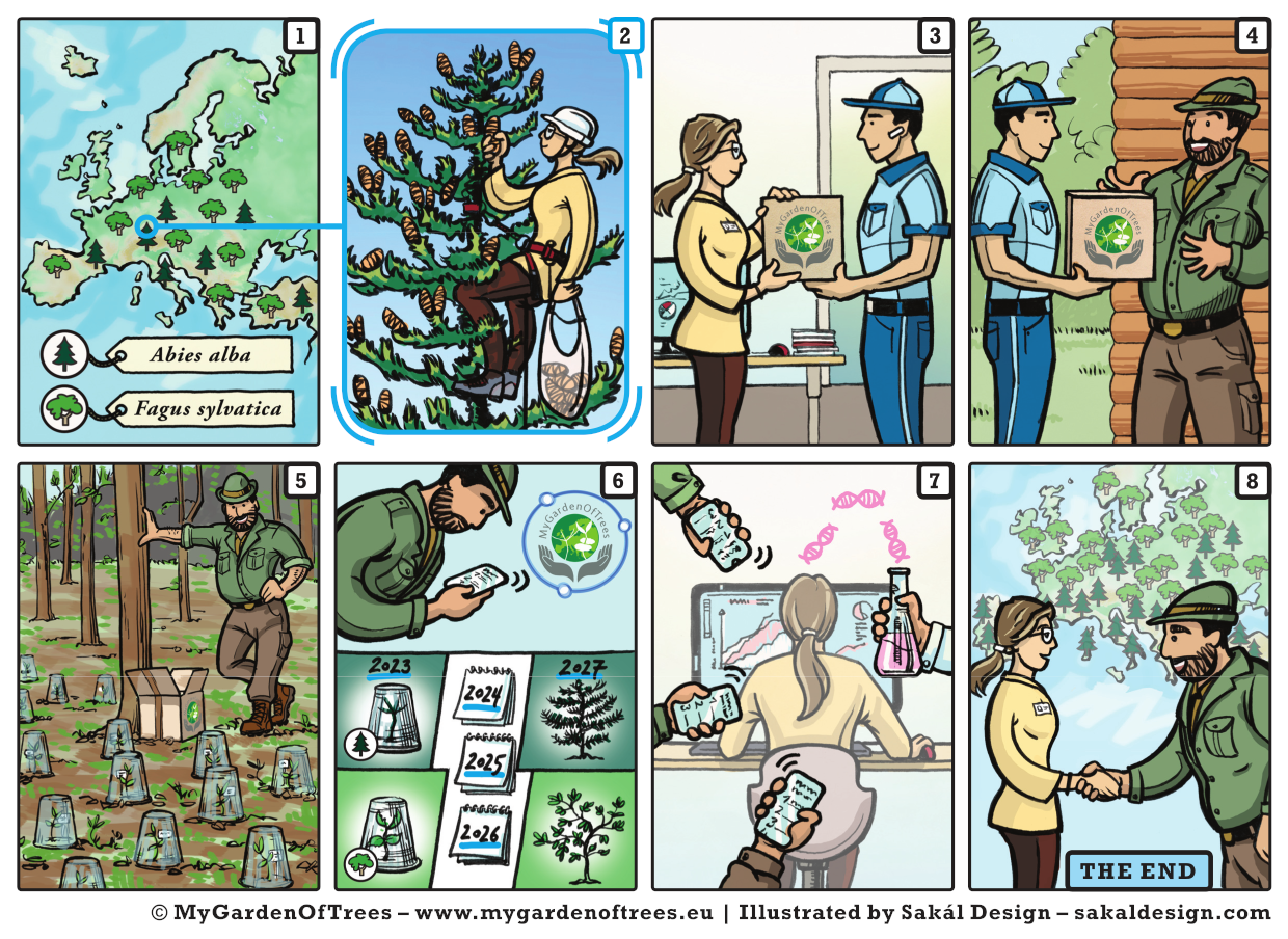 Observations from traditional provenance trials used in forestry were difficult to generalize because they have been limited to a small number of provenances of the species that were tested at one or few particular locations. Thus, they lacked scalability and predictability across the species current and future range, especially at the species range margins. In this experiment, the performance of various provenances and families is evaluated across a wide range of environments, thus findings can be generalized. In the coming 30 months, observations from the hundreds of micro-gardens across Europe will be combined together and with genomic data to draw general conclusions about the climate adaptedness of provenances and families. The ultimate goal of this project is to estimate the reaction norms of different populations and lineages in terms of early life-history traits across a large range of environments, including extremes, where fitness drops to zero. Reaction norms summarize the phenotypic expression of a genetic unit, and have been rarely estimated in across more than two natural environments, let alone the species range. This experiment will us to obtain an unprecedented number of observations across a wide–range of genetic units (lineages, populations, families) and environments. Further, using the genomic data, we will be able to estimate the genetic similarity between populations and families, and using the interpolated environmental data, the environmental similarity between garden locations. This information will be incorporated to a genomic prediction model, and used for predicting the breeding values of mother trees (genetic merit evaluated by their offspring) and the average performance of populations in untested environments. Thereby, we will be able to estimate most missing gene–environment combinations. The prediction tool will be presented as a web-tool; the first version is expected in 2026.