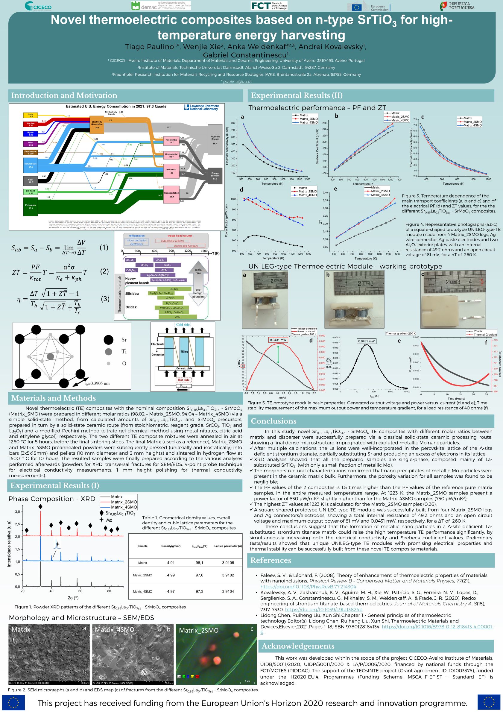 Finally, TEOsINTE (https://cordis.europa.eu/project/id/101003375) undoubtedly established that all the proposed goals can be successfully achieved in relatively simple and inexpensive ways for the Ca3Co4O9, ZnO and SrTiO3 systems, with only one exception in the CaMnO3 ceramic oxide system, which turned out to be a more complicated case than it was originally thought. The established TE oxides have thus been brought closer to the use in industrial TE harvesters of high-temperature waste heat, showing once again the remarkable power of the multidisciplinary materials science and engineering R&D.