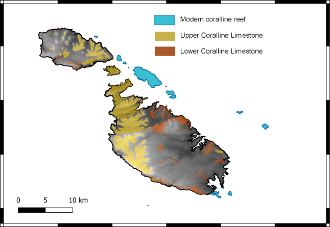 The onshore work in Malta was focused on two main units: the Late Miocene Upper Coralline Limestone (UCL) and the Late Oligocene Lower Coralline Limestone (LCL). These units are exposed across the Maltese archipelago.
