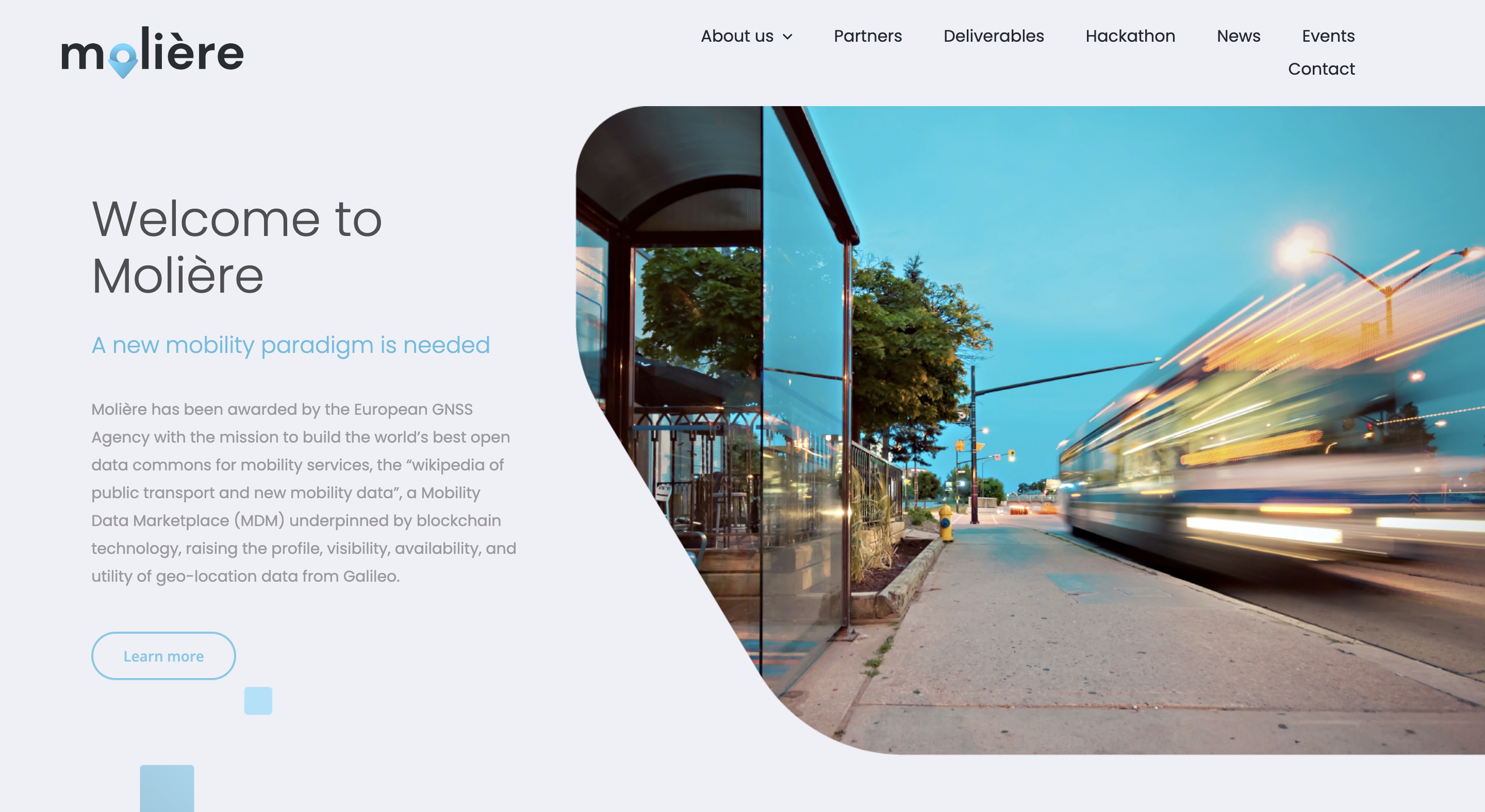 Molière is building an open data commons for mobility services, a Mobility Data Marketplace (MDM) underpinned by blockchain technology, raising the profile, visibility, availability, and utility of geo-location data from Galileo, and will test it to fuel and demonstrate a diverse set of concrete, highly relevant mobility scenarios and use cases where geo-location data is key, addressing the needs of cities, public transport authorities, mobility service providers, and end-users.