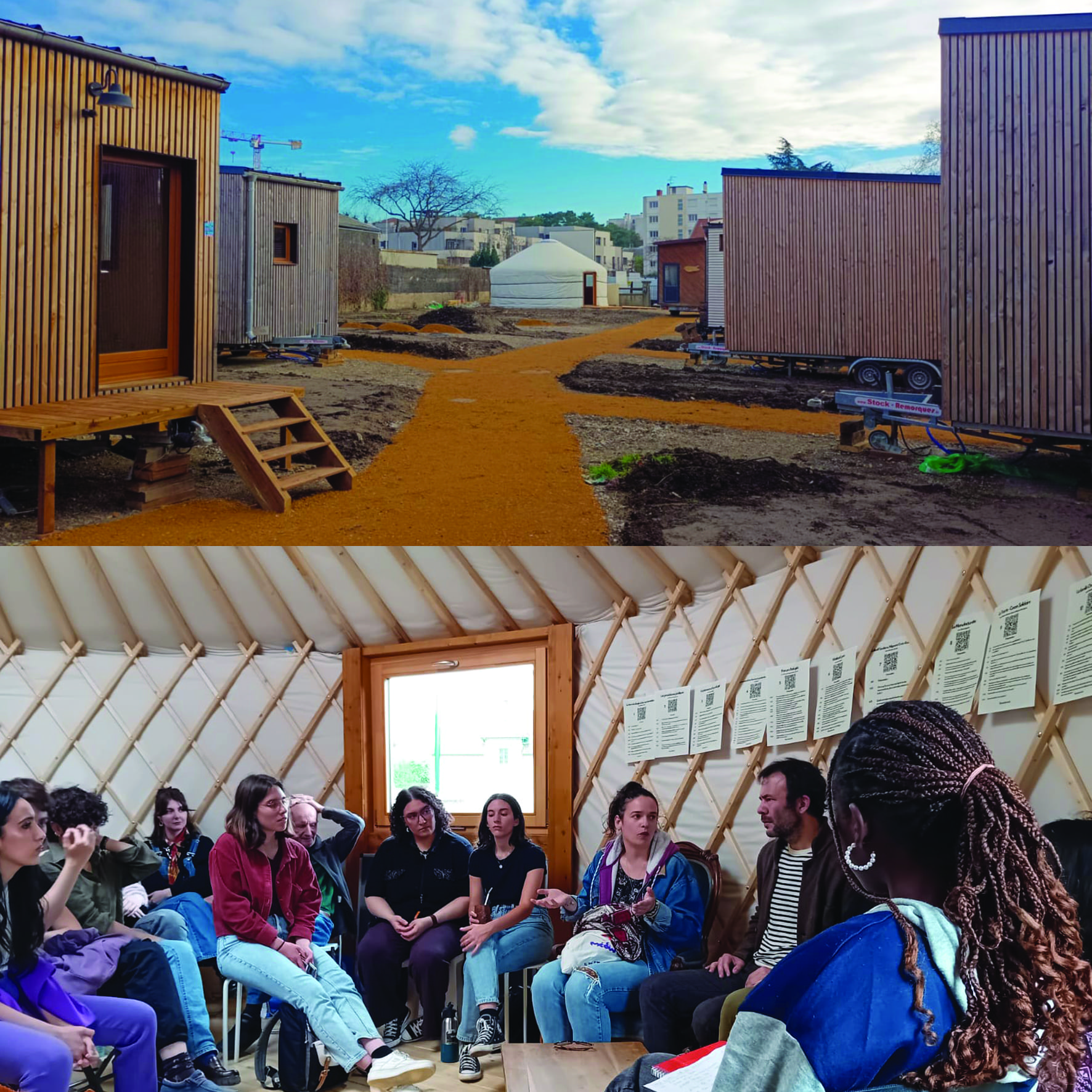 • Cocon in Lyon: 7 tiny houses and a yurt as a common space connected to the neighbors, with social mix and individual social follow-up