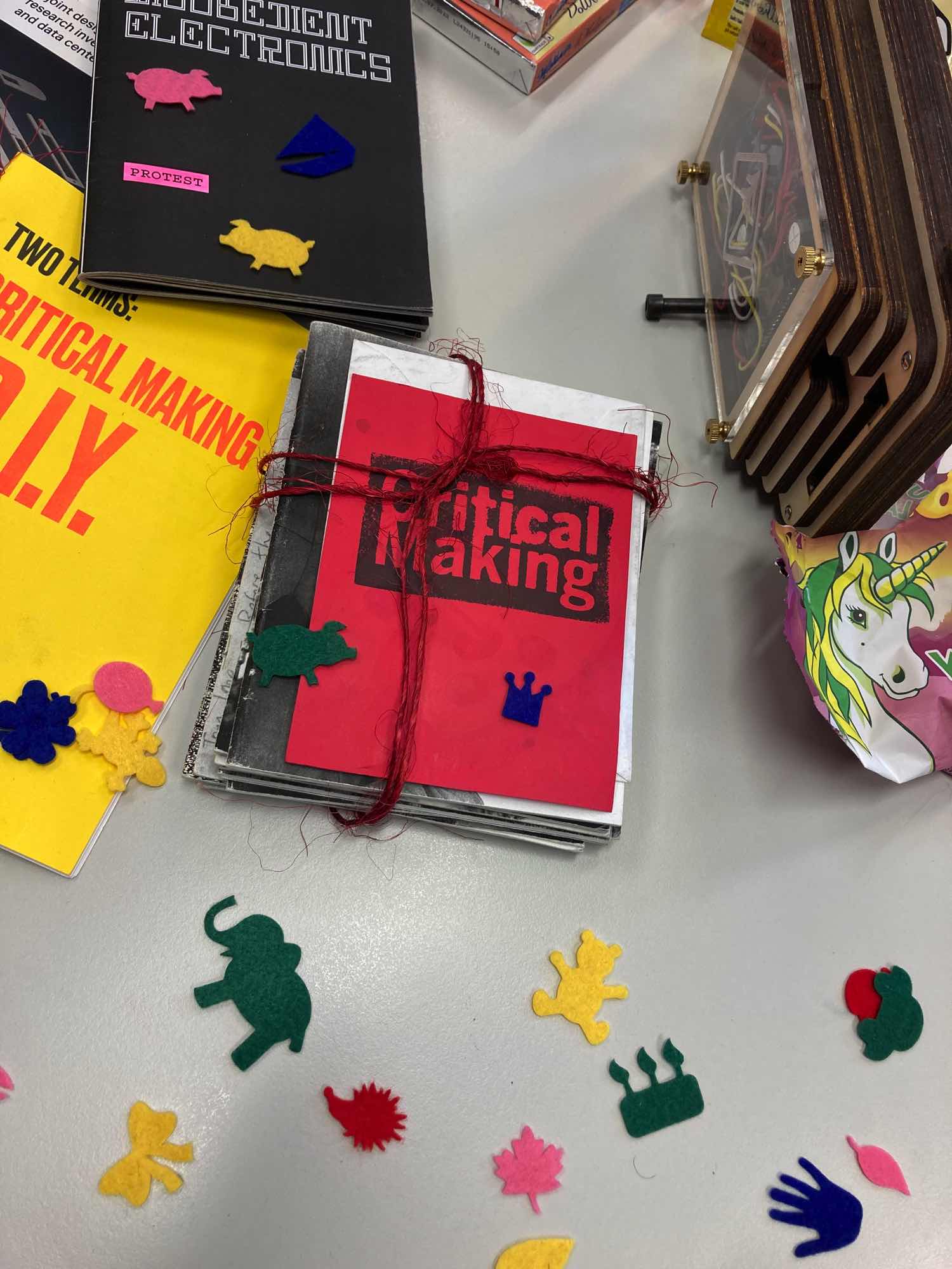 The Critical Making project worked on an updated version of the Critical Making principles together with the maker communities. These principles have been taken up in the various outputs of the project, especially those dedicated to the maker communities; it includes the various guidelines (the Critical Making Wundertüte) as well as the CMFR that was turned into an online game for makers. The reflective questions in the game are aligned with the principles and the game logic encourages players to collect stickers that relate to these principles. The practical outputs of the project have already received interest from maker communities and other projects.
