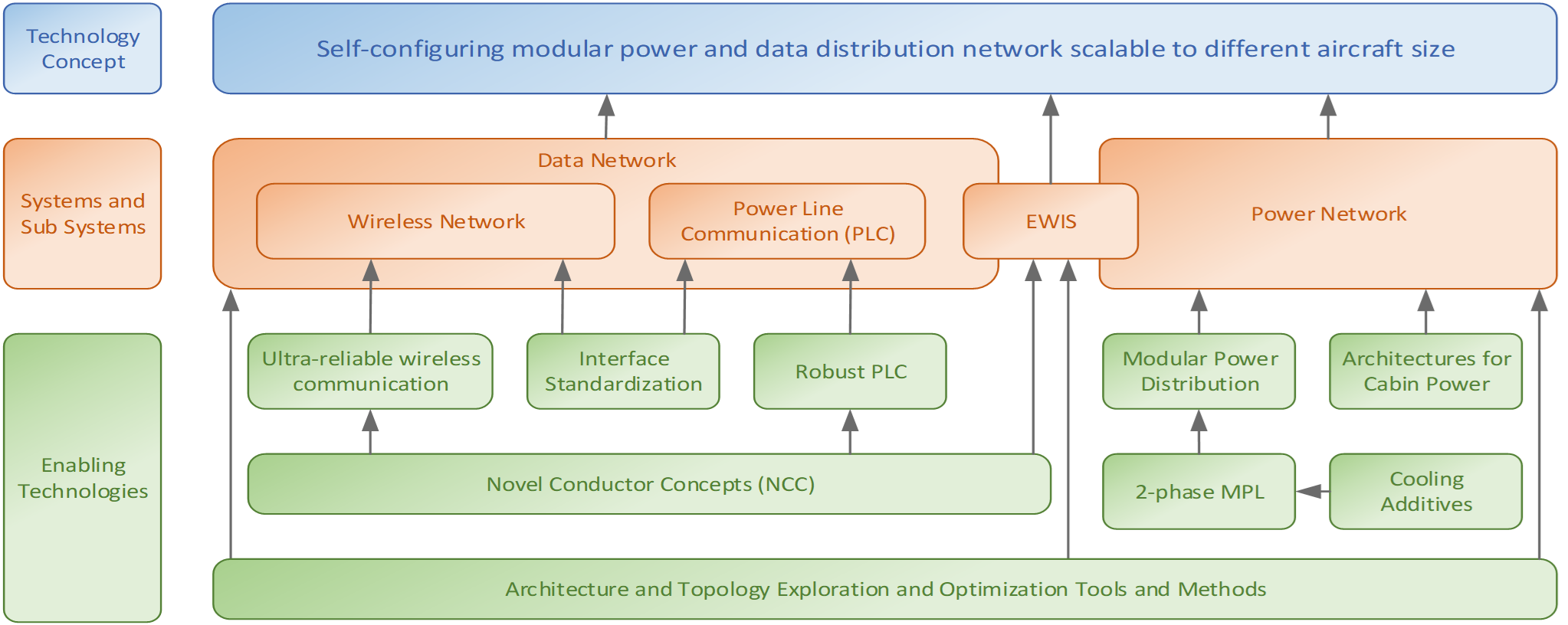 ADENEAS mission is to pave the way for the development of a safe, light, self-configuring, autonomous and modular power and data distribution network that is scalable to all aircraft sizes. To contribute to this dot on the horizon, the product proposition illustrated is defined.