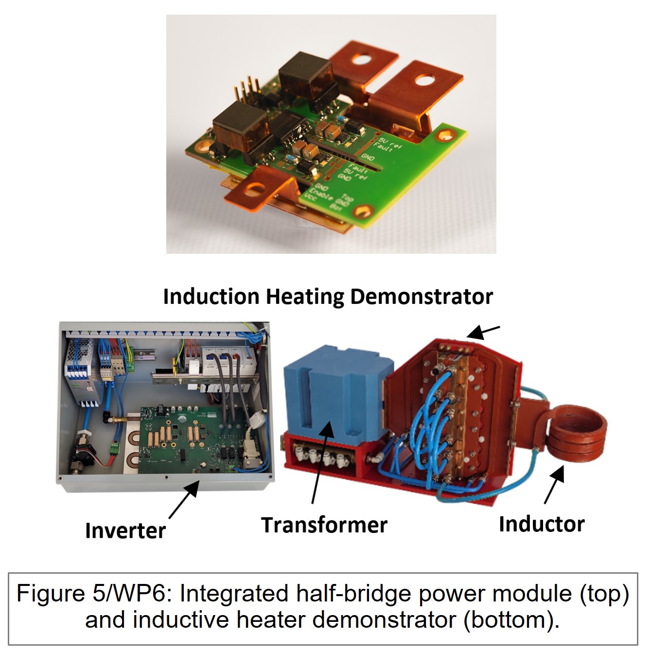 - Testing and characterization of the power module with available SiC chips and its integration into demonstrator applications such as an inductive heater, a dual active bridge EV charger and a photovoltaic inverter.