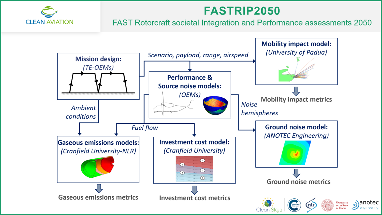 FASTRIP2050 contributed to the CS2 objectives by undertaking performance, environmental, and socio-economic impact assessments for advanced future fast rotorcraft configurations. The assessments were undertaken at airport and Air Traffic System levels, aiming to quantify improvements that may be accrued through the replacement of reference technology over designated time scales. Within the scope of the project and as part of the TE, the project was positioned to assess CS2 Fast Rotorcraft (FRC) technologies and hence includes Airbus Helicopter’s compound rotorcraft, the Rapid and Cost-Effective Rotorcraft (RACER) and Leonardo Helicopter’s tilt-rotor aircraft, the Next Generation Civil Tilt-Rotorcraft (NGCTR) and compares them with reference technology.