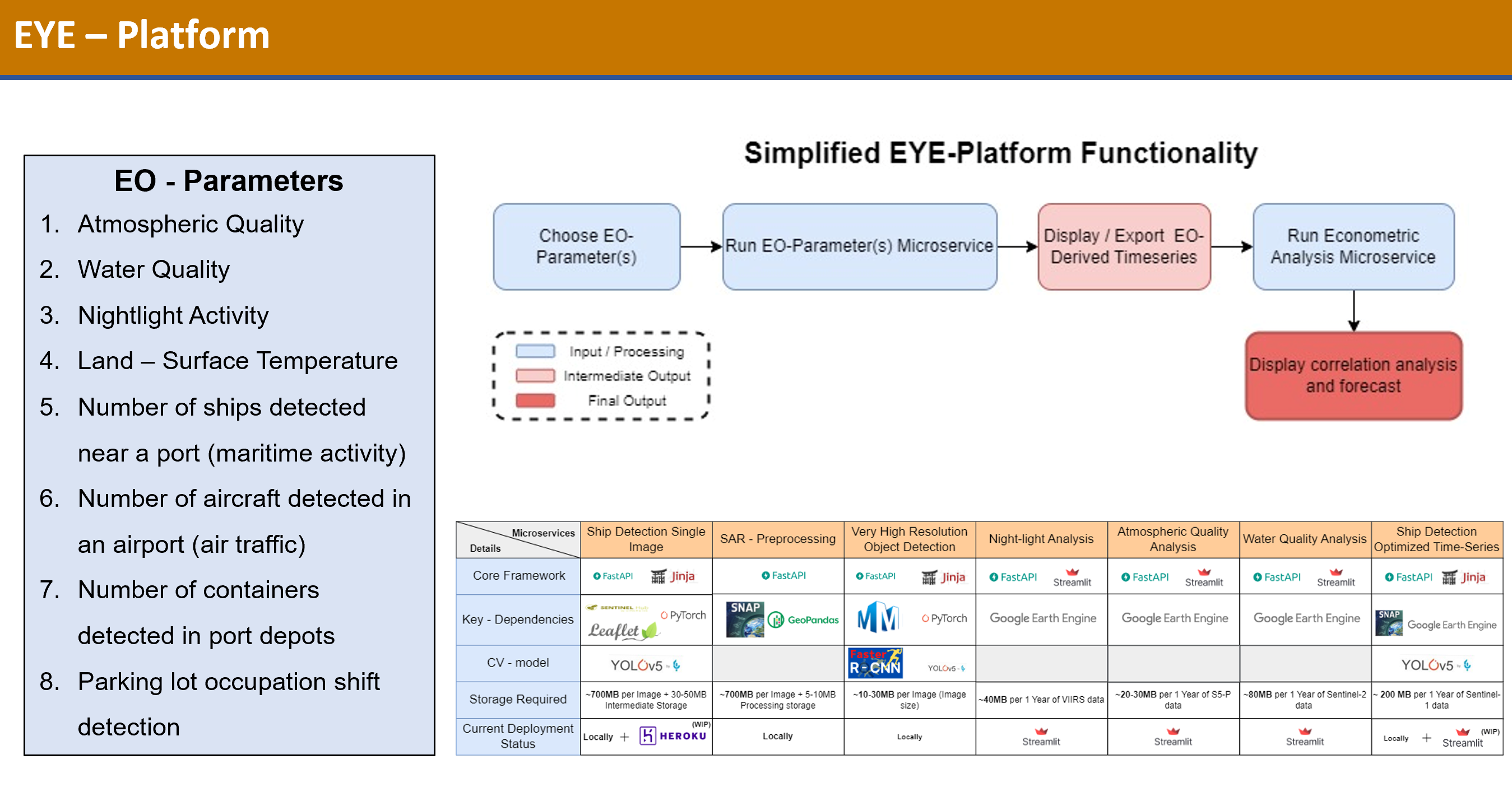 EYE's fusion of economic, epidemiological, remote sensing, and AI methodologies advances beyond the state of the art, delivering a user-friendly platform for timely, data-driven situational awareness and policy support.
