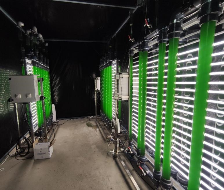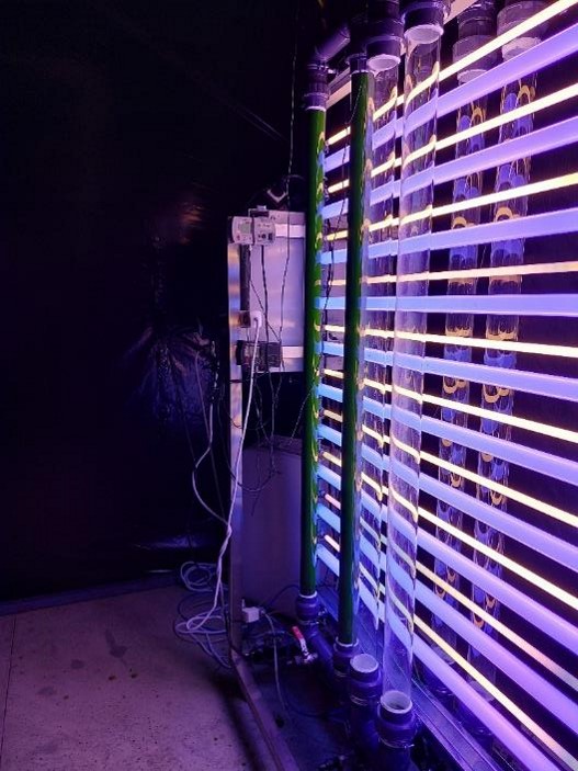 • Technology Scaling and Modules Development: We successfully scaled up our technology for producing cyanobacterial biomass in closed systems where cyanobacteria proliferate exponentially, then cells are exposed to UV and PAR radiation stress. We are also actively researching the optimal type of process to maximize efficiency.
