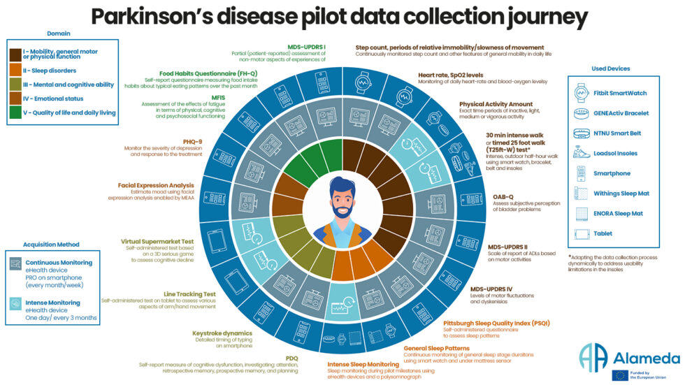 A distinguishing achievement of the project is the ALAMEDA Data Collection Journey. Embracing the moral of proactive and continuous healthcare, this journey employs unobtrusive health monitoring through wearable devices and smartphone applications. Motor functions, sleep patterns, emotional well-being, and quality of life are carefully, continuously monitored and analyzed, empowering healthcare professionals with otherwise hidden insights, while preserving patient comfort and privacy. Furthermore, ALAMEDA exhibited a new era of technological breakthroughs with its AI and Digital Tools for brain diseases assessment. Innovative AI/ML models and tools have been carefully crafted while their predictive robustness has been explored through rigorous analysis and parallel assessment by clinical experts. The integration of wearable and IoT sensors, including the unobtrusive sleep monitoring and belt sensors developed within ALAMEDA, exemplifies the consortium's unwavering commitment to revolutionizing patient care. ALAMEDA’s legacy lies not only in the advancements achieved but also, and maybe more important, in the promise it holds for reshaping the future of brain disease management.