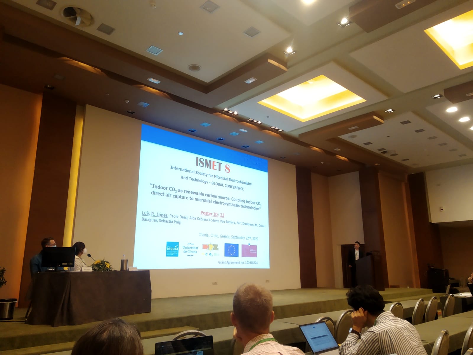 The work carried out during the project to achieve the RO was organized based on four interconnected work packages (WP). As described in the project proposal, each WP included various tasks to help achieve the four different RO of the project. WP1: Design and operation of a CO2-MCM prototype. Work focused first on the evaluation of different CO2 adsorbent materials by impregnating fumed silica (FS) with polyethylenimine (PEI) of different molecular weights. From these experiments, the most suitable material composition to perform indoor CO2 capture was obtained and thus this composition was selected to be used within the CO2-MCM prototype. Along the project, up to three CO2-MCM prototypes were developed, with different degrees of automation at different degrees of miniaturization. The last prototype was built in a single box, containing all the instrumentation to operate autonomously as well as the capture module containing the adsorbent material. WP 2: Determine the optimal conditions for steering gas bio-electro-fermentation towards selective production of hexanol. Tasks around this WP focused on the optimization of bioelectrochemical system towards selective production of biofuels, specifically methane. Methane was selected as a suitable biofuel to be produced bioelectrochemically using CO2 from indoor environments over other biofuels such as ethanol and hexanol, as originally described. Several experiments were carried out to assess the effect of operating variables (liquid and gas hydraulic residence time) over methane conversion and productivity rate. Tests also focused on the evaluation of the carbon needs to evaluate the feasibility of the coupling of CO2-MCM within the microbial electrosynthesis module (MESM). Results demonstrated the importance of the selection of a suitable liquid renovation rate as well as the minimum CO2 requirements to sustain a proper methane conversion within the MESM. This was useful information for the coupling of the capture and bioconversion module. The evaluation of the coupling of the microbioreactor module (MBM), by coupling of capillary microreactors was tested to reduce gas-to-liquid mass transfer limitation within the MESM. Results demonstrated that methane conversion was increased by 25 % as compared to when the microreactor was not in use. WP 3 Set up a MICRO-BIO process prototype to demonstrate the optimized process operation for hexanol production. Tasks around WP3 were carried out since the beginning of the project, as when each module was designed, it was designed taking into consideration how to integrate this module with the rest of the modules. The CO2-MCM module was the only module automated, while the MESM together with the capillary reactor module were operated semi-automatically, Instead, to assess the different synergistic relations between the modules, off-line coupling of the modules was performed, which means all three modules were operated in continuous mode, but they were not physically connected. One important milestone achieved along the project was the evaluation of the CO2-MCM within real environments at the Jacobs office in Bristol. This allowed us to demonstrate and evaluate the capability of the prototype to capture CO2 within a real environment. WP 4 Management, training, exploitation, and dissemination activities. Definitively this WP was one of the most active along the entirety of the project, as multiple activities were performed to manage, exploit, and disseminate the project. Because of the nature of the project (indoor air), the project captured great attention from the public (schools, non-expert public, professional sector, stakeholders) and thus we were invited to several activities (conference talks, school talks, radio, TV, press) to disseminate the project. Training activities were also carried out such as a training course in Delft University. At the same time, multiple meetings were carried out with the supervisory committee to assess the progress of the project and to plan the next steps.