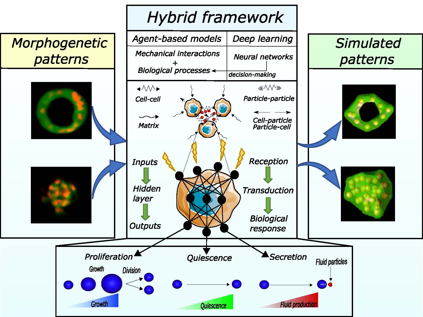 • We have defined a new computational framework based on deep learning techniques to simulate morphogenetic patterns in organoids. In particular, we focus on the understanding of how cell functions are coordinated spatially and temporally for the formation of PDAC solid organoids and with lumen. The graphical abstract of this methodology is shown in Figure 1.