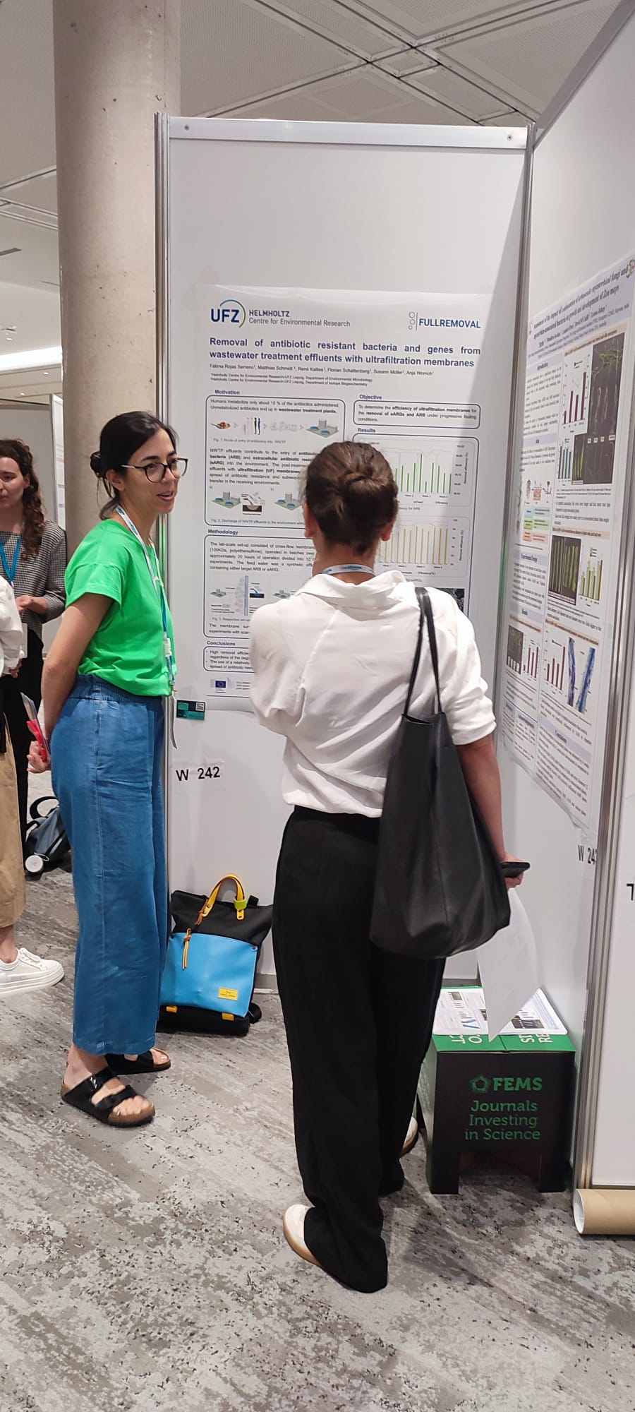 WP4:Verification of ARB and eARGs presence inside membrane biofouling layer and conjugation occurrence: The presence of ARB within the membrane biofouling layer was verified with Scanning Electron Microscopy (SEM) as well as Helium Ion Microscopy (HIM). In addition, the presence of resistance plasmids in the membrane fouling layer was successfully verified with Direct-gene fluorescence in situ hybridization or Direct-GeneFISH, a technique with great potential for the detection of genes but not used before for the detection of plasmids deposition in ultrafiltration membrane fouling layers. The verification of conjugation occurrence was replaced by experiments evaluating the effect of fouling in the removal efficiency of ARB and eARGs by ultrafiltration membranes, concluding that the presence of a fouling layer can slightly diminish the retention of eARGs by ultrafiltration membranes.