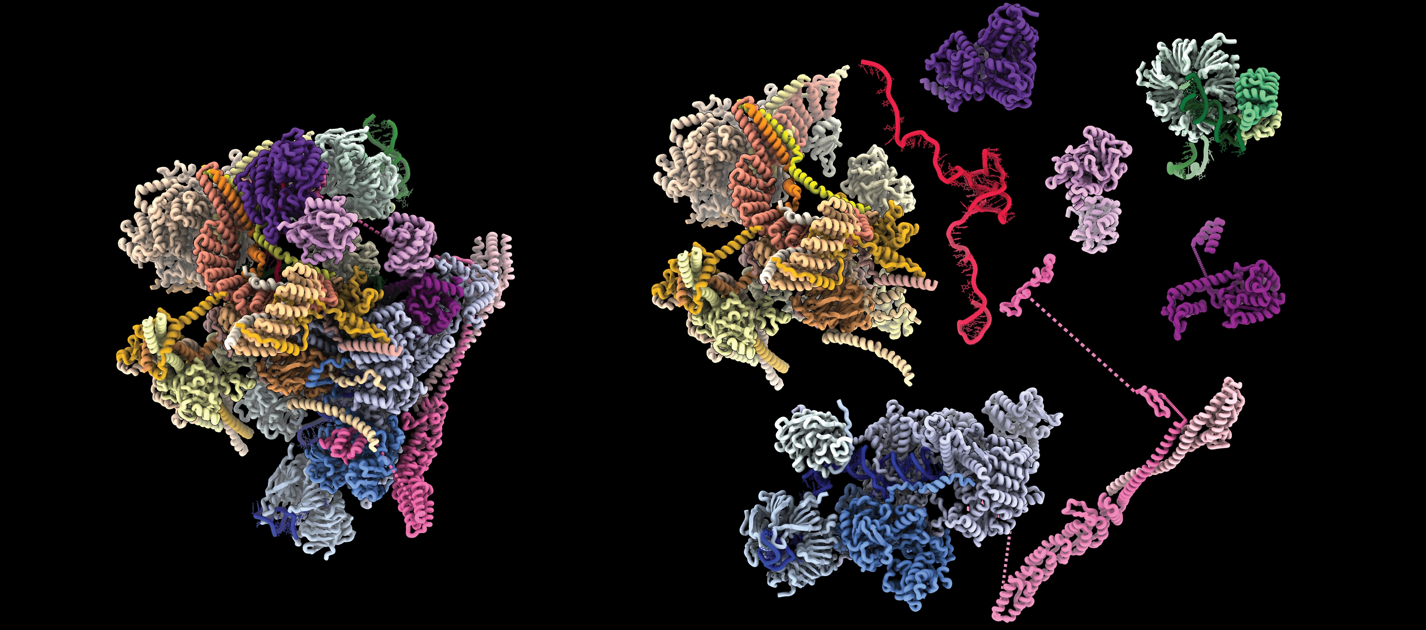 To tackle these questions, we set out to use genome engineering and advanced electron microscopy methods (known as cryo-EM) to isolate spliceosomes, mRNAs, and TREX complexes from human cells and obtain detailed images of these complex molecular machines at different stages of their life cycle. This would allow us to understand how these machineries coordinate their activities and how it is ensured that spliceosomes are only disassembled once they have executed their task.