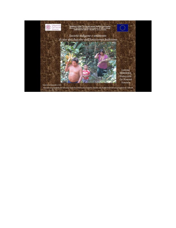 - June 2022: ‘Presentazione progetti Marie Curie 2019-2020’, Ca’ Foscari University. Paper: ‘Nameless-Stories: Invisible and Forgotten Stories of the Rubber Boom (Bolivian Amazonia)’.