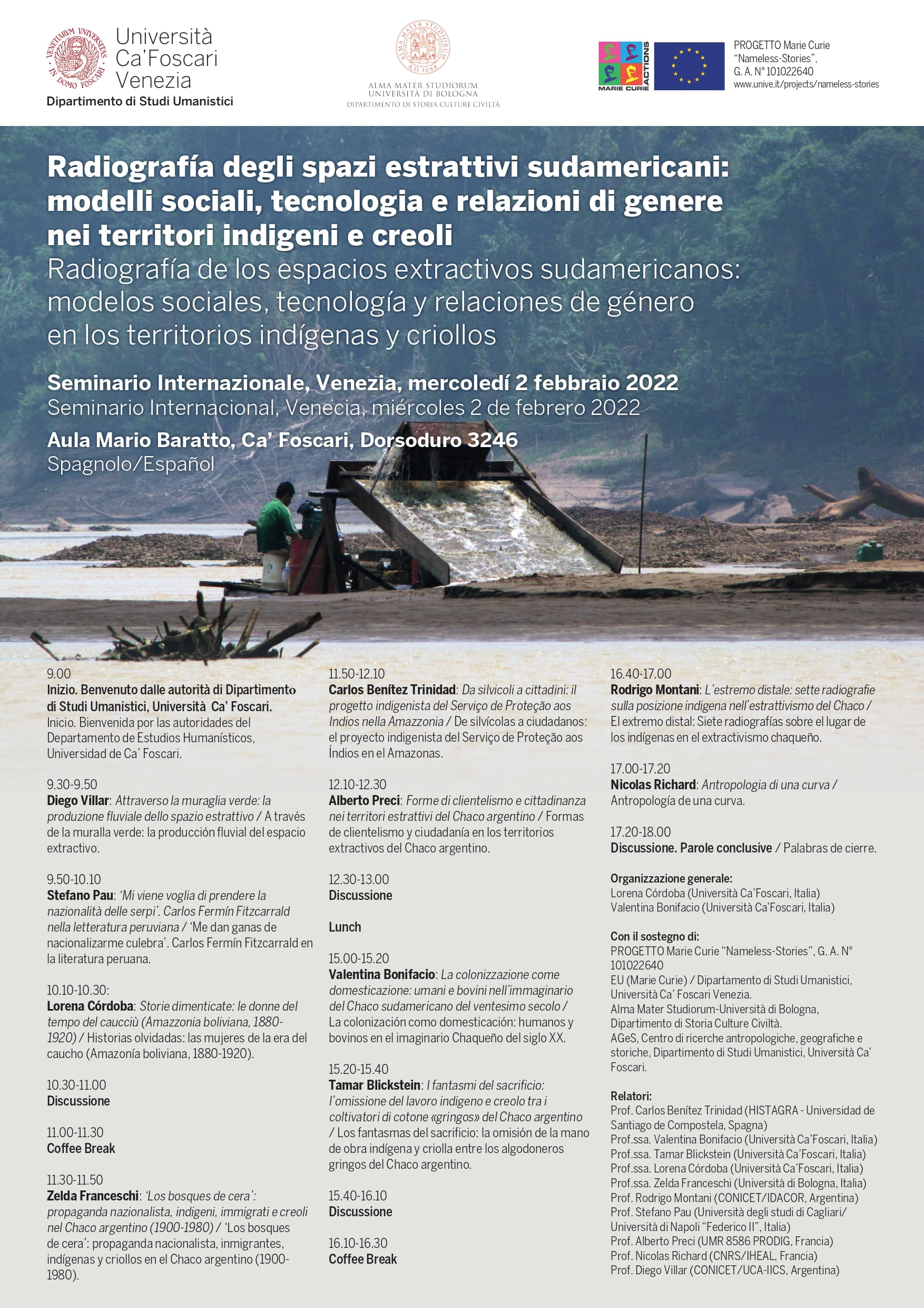 - February 2022: ‘Radiography of Extractive Spaces’. Ca’ Foscari University. Paper: ‘Storie dimenticate: le donne del tempo del caucciù (1880-1920)’.
