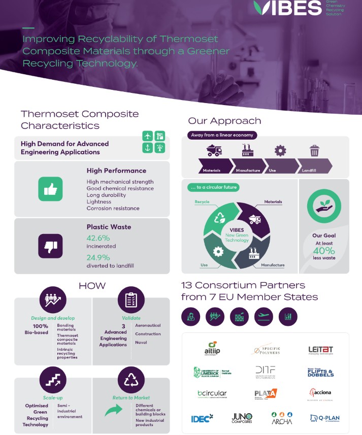 - Design and implementation of VIBES green recycling technology to separate and valorise the composite components.
