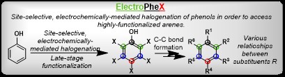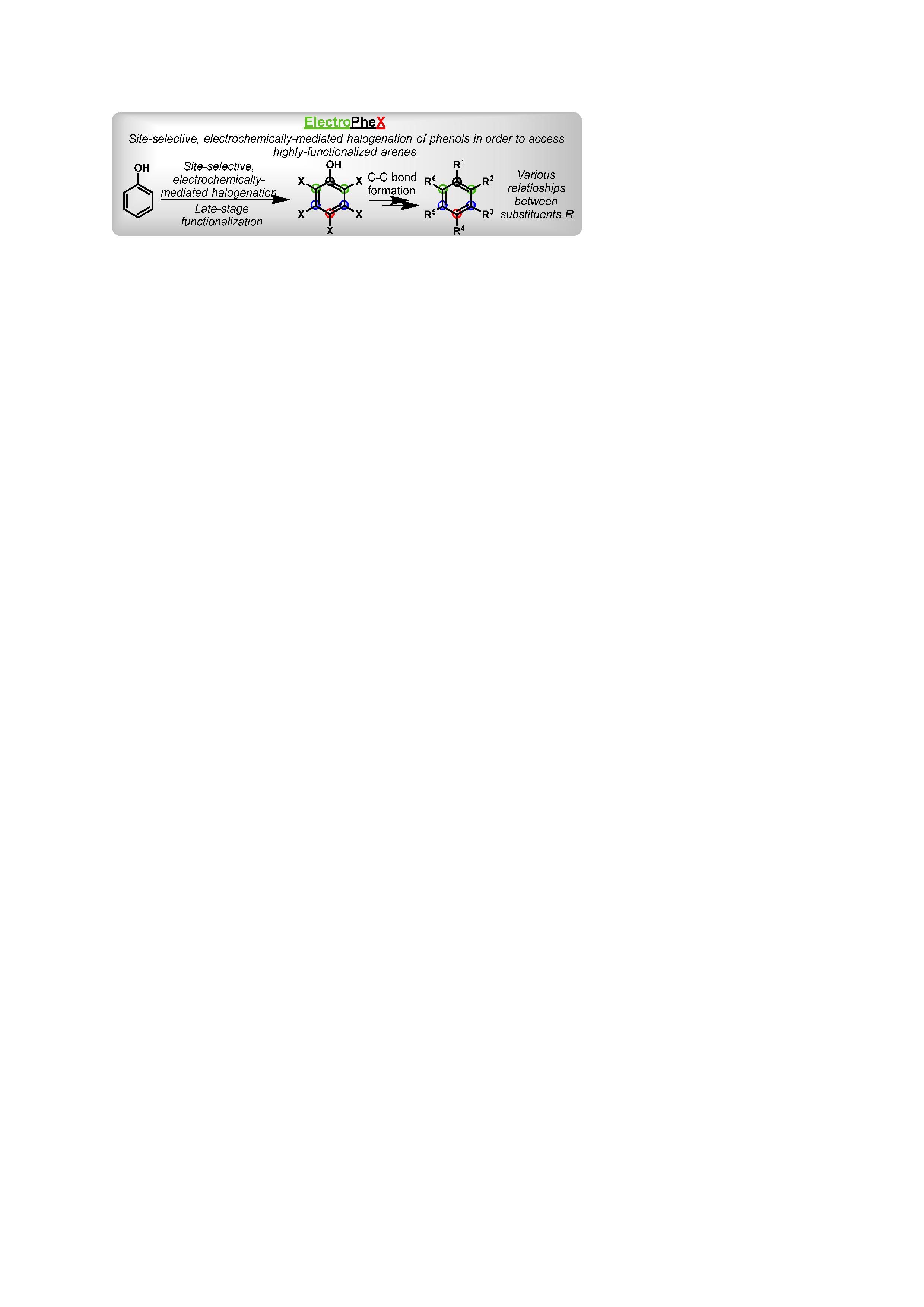 Thus, the development of tools that will allow us to access them in a selective manner are of interest. ElectroPheX aims to develop synthetic methodologies that successfully access poly-substituted aromatics by first halogenate (X) Phenols under Electrochemical conditions.
