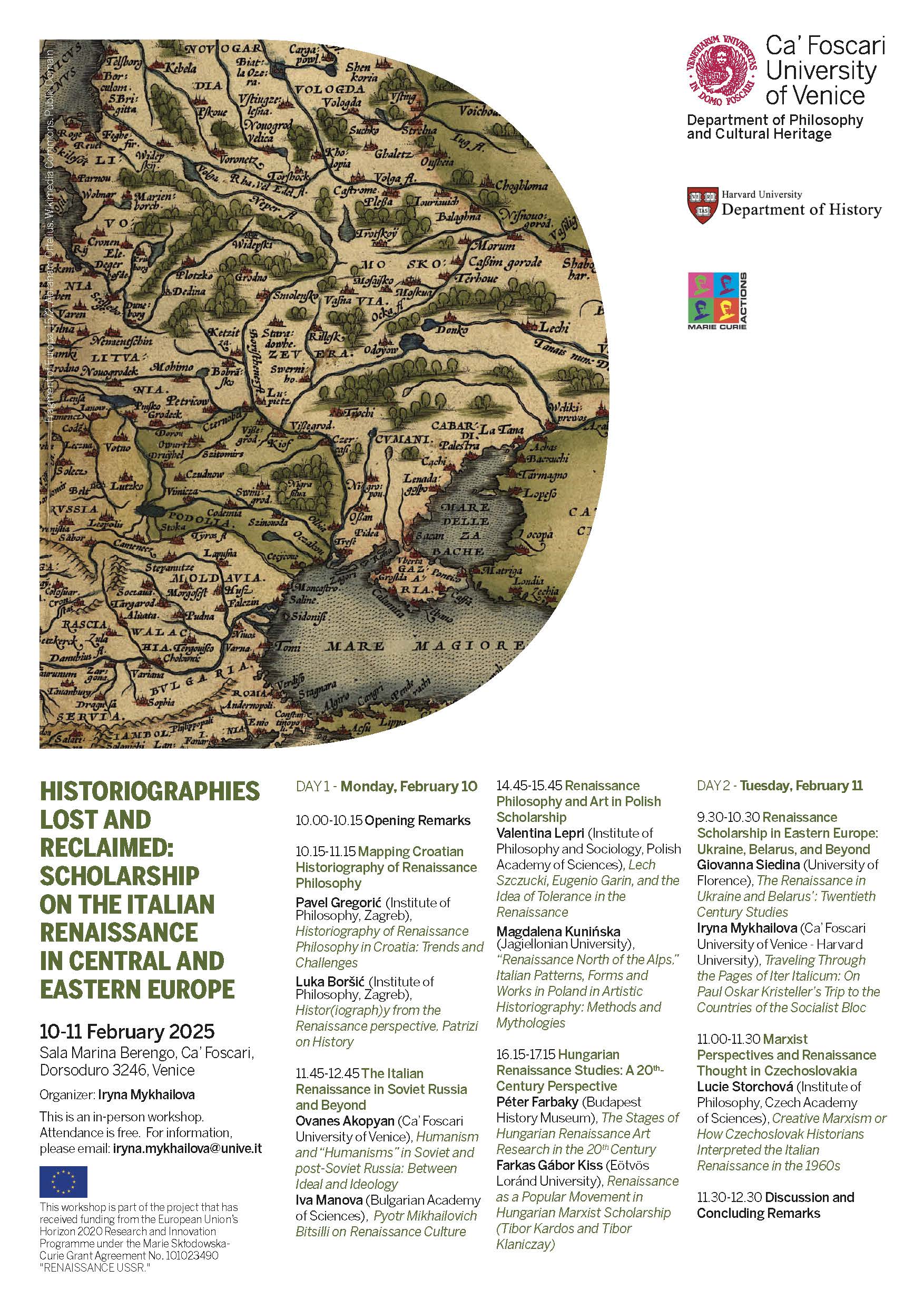 The monograph “The Italian Renaissance in the Soviet Union: Historiography and Cultural Reception, 1920s–1980s,” developed as part of the research project, will be an invaluable resource for both professional historians and the general public interested in understanding the Soviet perspective on the Italian Renaissance. This work is planned for publication with Brill in 2026. Another key outcome of the project is the international workshop “Historiographies Lost and Reclaimed: Scholarship on the Italian Renaissance in Central and Eastern Europe,” held at Ca’ Foscari University of Venice on 10-11 February 2025. The edited volume, featuring papers presented at the workshop, is also expected to be published with Brill in 2026.