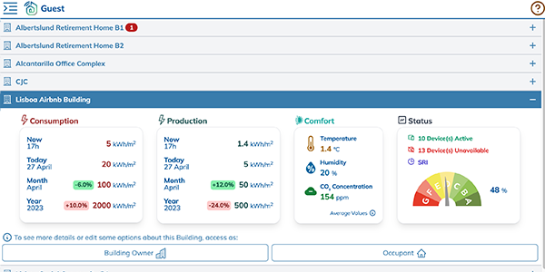 Development and integration of advanced building energy management control algorithms, via transparent access to the control of IoT upgraded equipment integrated with current smart appliances, and by providing access to knowledge on the user/building behaviour and on building energy performance. By using the proposed building smart performance assessment and advisor as well as user/building