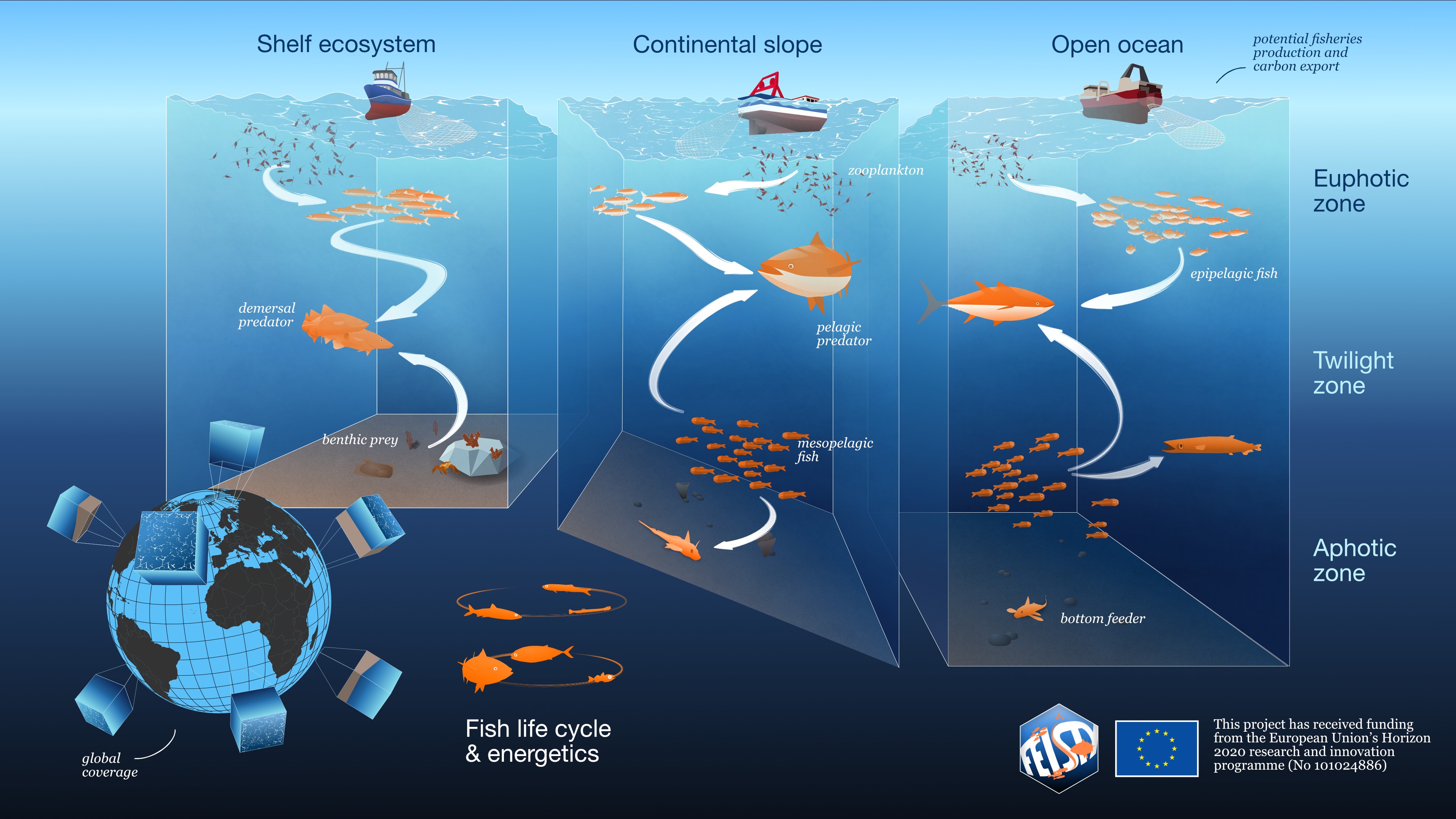My project had three primary goals. First, I aimed to study the variation in bottom-living fish populations across different ocean regions and identify key factors influencing these numbers, such as temperature and fishing activity. Second, I used a mathematical model to predict the abundance of bottom-living fish and how this has changed with historical fishing. Lastly, I aimed to forecast how bottom-living fish might respond to future changes.