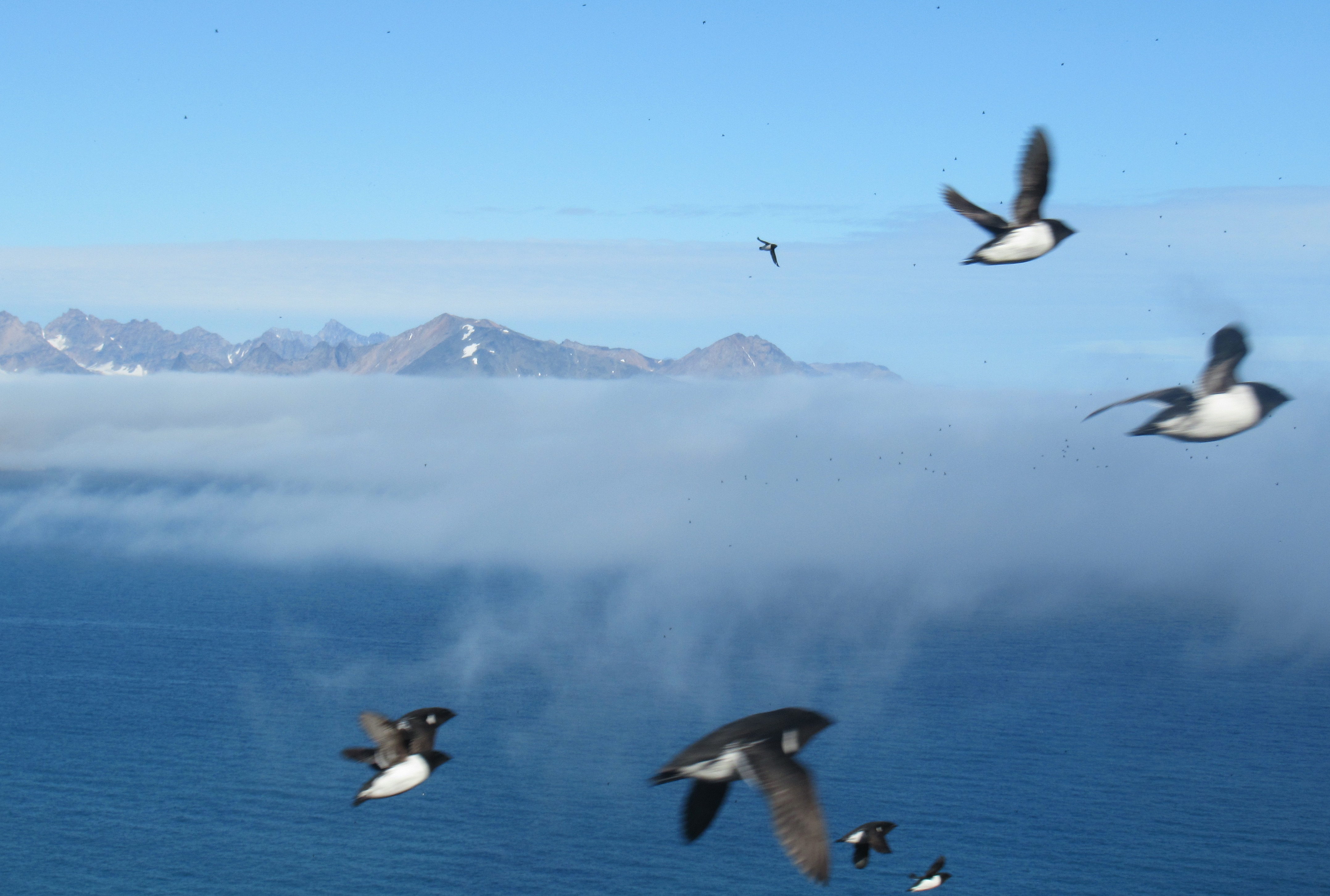 Key results include that variation in climate change-sensitive environmental conditions (SST; SIC) can transform time-activity budgets of little auks, driving increases in DEE. Behavioral plasticity currently appears to buffer fitness effects. However, modeling suggested accelerating increases in SST and DEE, which could ultimately become unsustainable. Hg levels were unrelated to activity budgets or DEE. These results have been published open access in Ecology, with an accompanying photo gallery article in the Bulletin of the Ecological Society of America.