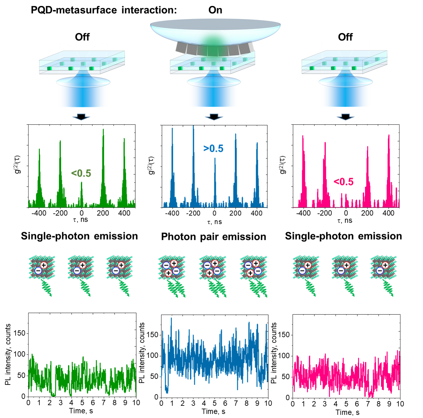 As a result of the project the new direction related to the synthesis of high-quality semiconductor nanocrystals and fabrication of plasmon-exciton quantum emitters was established in the host institution (Centro de Fisica de Materiales, Donostia – San Sebastian, Spain) for the first time. During the project, new insights about the preservation of the single-photon nature of the quantum emitter emission and the significant acceleration of their radiative recombination were found. Beyond the state of the art, the technique of the on-demand reversible switching of the emission mode of individual semiconductor quantum emitters using plasmonic metasurfaces was developed. This result is very important for the development of (quantum emitter)-based devices. This technique is more versatile for future applications than commonly used methods because the plasmonic metasurface is coupled to an array of quantum emitters, impacting all of them collectively. Moreover, the technique can be applied to a wide range of materials with quantum-emitting properties, making it of great interest to scientists working in diverse photonic areas. The novel technique of the plasmon-induced recovery of the arrays of semiconductor quantum emitters was also developed. This result could be applied to the fabrication of any thin-film (quantum dot)-based coverage by increasing their brightness and overall emission efficiency, which is important not only for quantum technology but also for the QLED fabrication industry.