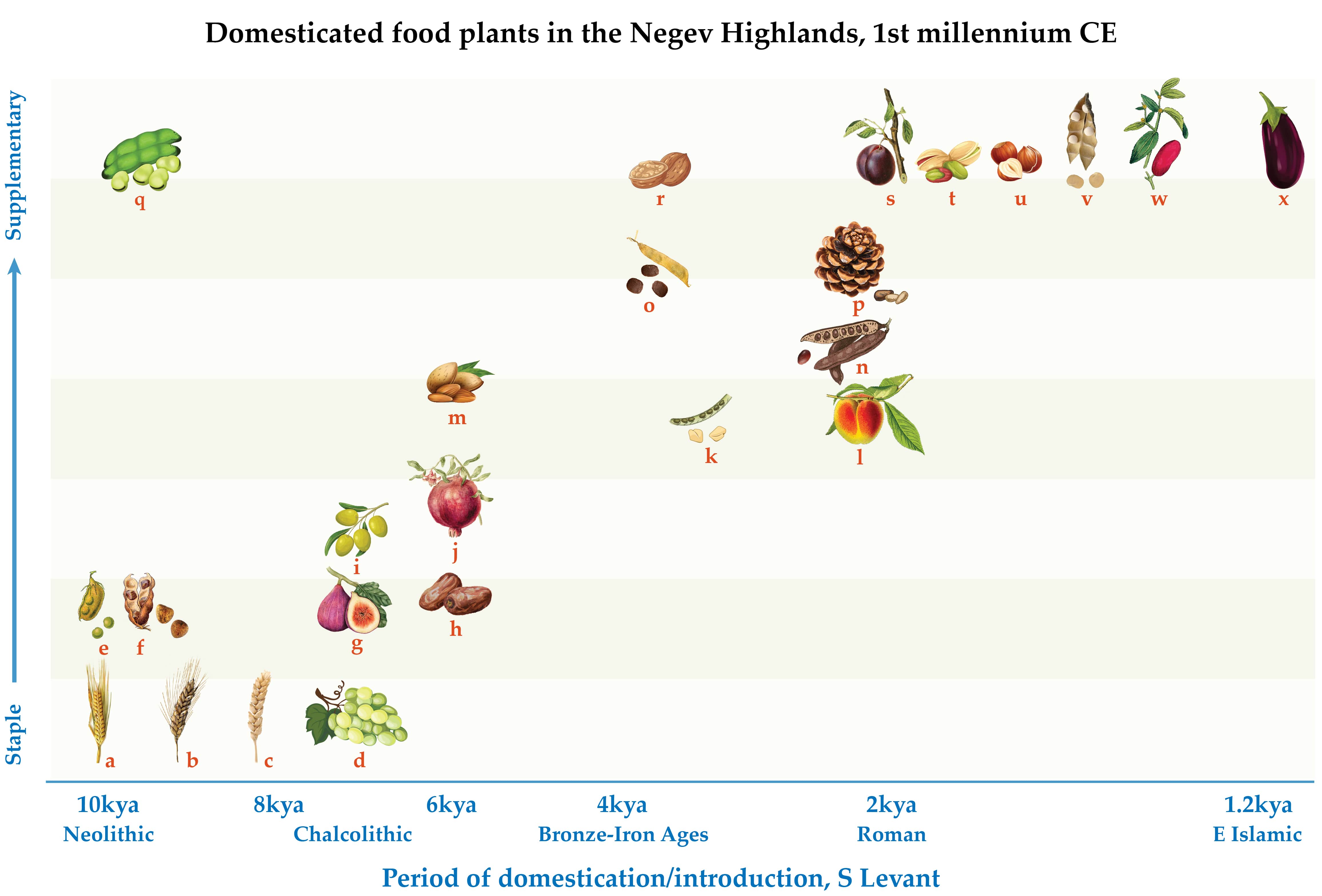 Results of this research indicate that the 1st c. BCE to the 4th c. CE marked a period of unprecedented crop diffusion in the Southern Levant – a phenomenon coined in project publications as “Roman Agricultural Diffusion” (RAD). In the Byzantine and Early Islamic periods, this new agricultural diversity becomes evident in Negev desert settlements, along with at least one crop species first introduced in the Early Islamic period: the aubergine. The latter represents a component of the “Islamic Green Revolution” (IGR). Considering the IGR and RAD together, the first millennium CE saw more new contributions to agricultural diversity than any previous millennium – and this appears to be the case throughout the Middle East and Mediterranean. However, in the Negev at least, none of the first millennium introductions are well-represented in archaeobotanical assemblages. This suggests that they did not quickly change local diets or landscapes, and supports a gradualist model for agricultural change over the last 10,000 years.