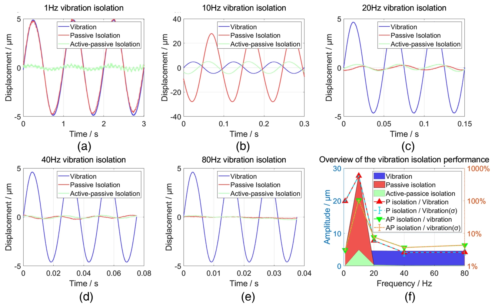 4. A set of novel vibration isolation strategies, including Modified Active-positive hybrid (MAPH) and hybrid add-on damping (HAD) methods, has been developed to improve the vibration isolation performance of large-stroke nanopositioning systems. Finally, the system has successfully resolved the crucial vibration isolation problem, since a high vibration reduction ratio (over 90%) across the large working range (0 to 500 Hz) has been achieved and the proposed nanopositioning system can run well in a large-range, nanoscale, stable, and reliable manner.