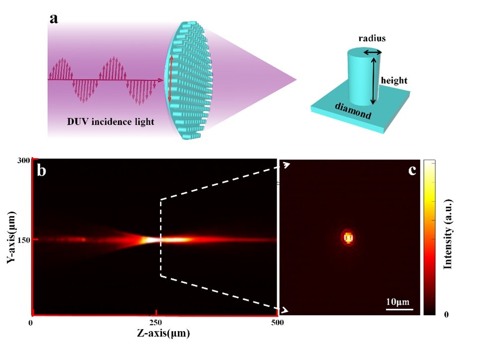 3) Numerical simulation and design of diamond based metasurface for the polarization control of both blue and UV light.