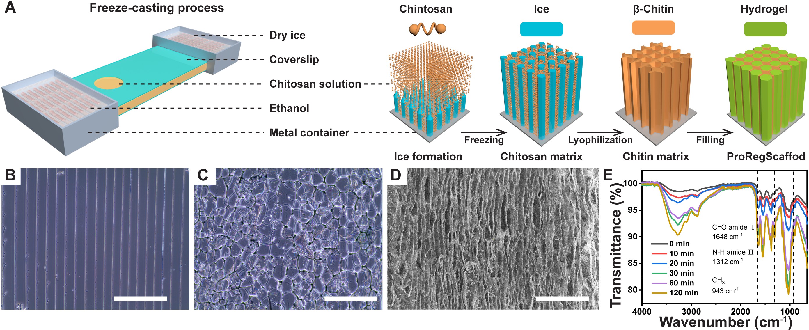1. Channel size of the 3D chitosan matrix can be mediated by ice growth regulators.