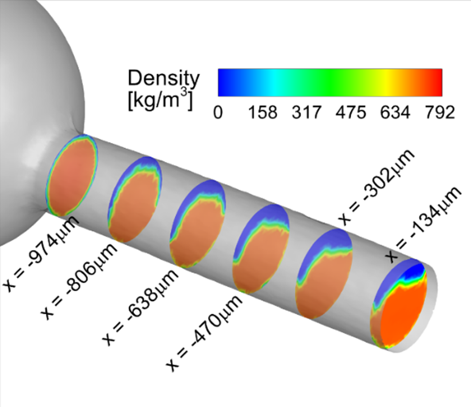 • CFD Code: An innovative CFD code was created that integrates the thermodynamic model and accurately simulates multiphase flows within fuel injection systems. This code has shown high fidelity in replicating complex in-nozzle flow phenomena and spray dynamics. By