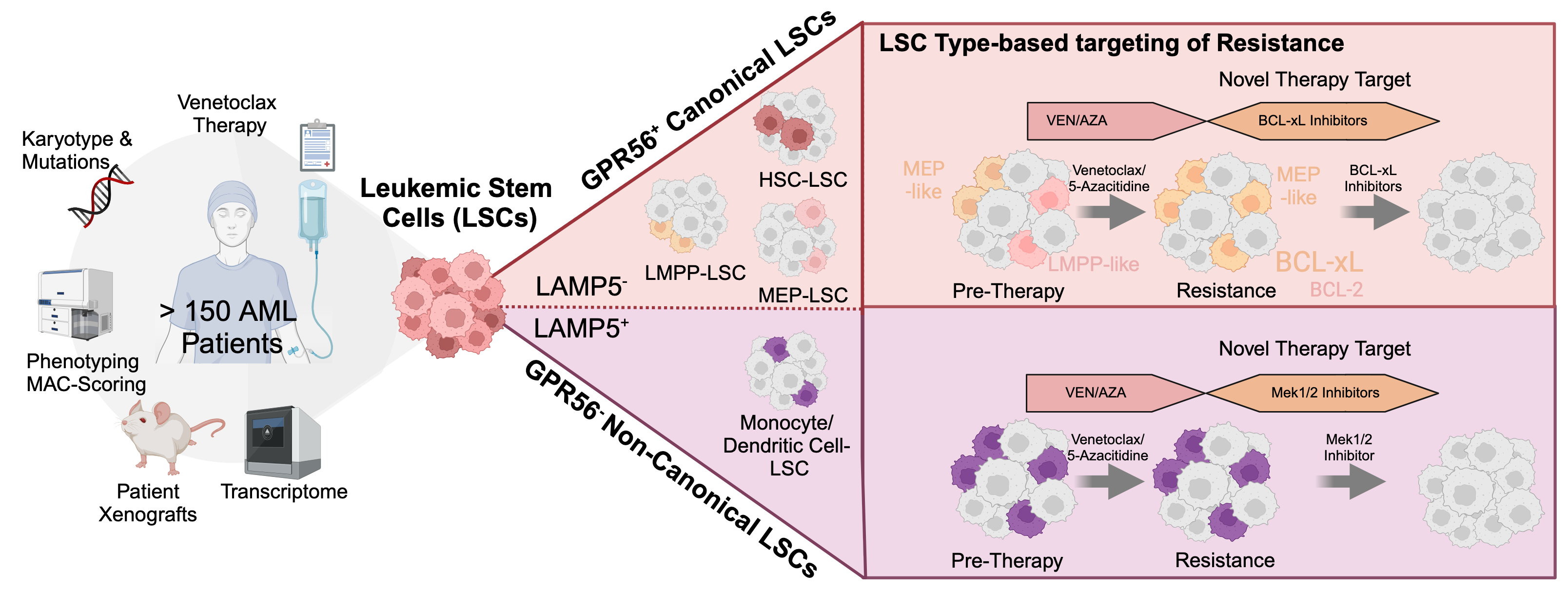 One of the biggest challenges in AML treatment is therapy resistance—when cancer cells survive treatment and cause the disease to return. A key reason for this is the presence of leukemia stem cells (LSCs), a rare subset of cancer cells that have the ability to restart the disease, much like normal stem cells regenerate healthy tissue. Even after treatment, these LSCs can remain hidden in the body, leading to relapse.