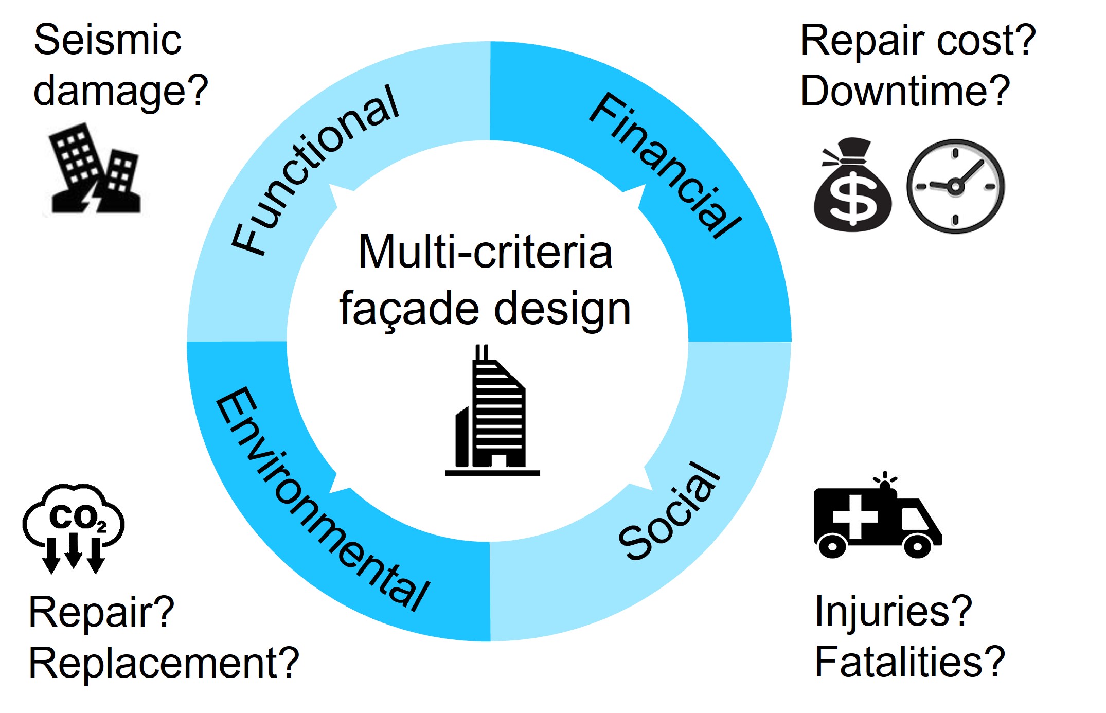 From a design perspective, the project developed decision-support frameworks that comprehensively assesses seismic safety in comparison with other performance measures, as energy efficiency and ecological footprint. The project focused on integrating seismic safety into lifecycle-based façade design and assessment, thus enhancing and developing novel multi-criteria decision-making tools for decision makers and investors. Additionally, a probabilistic fragility-based framework was developed to facilitate the multi-performance (energy and seismic) design of façade solutions.