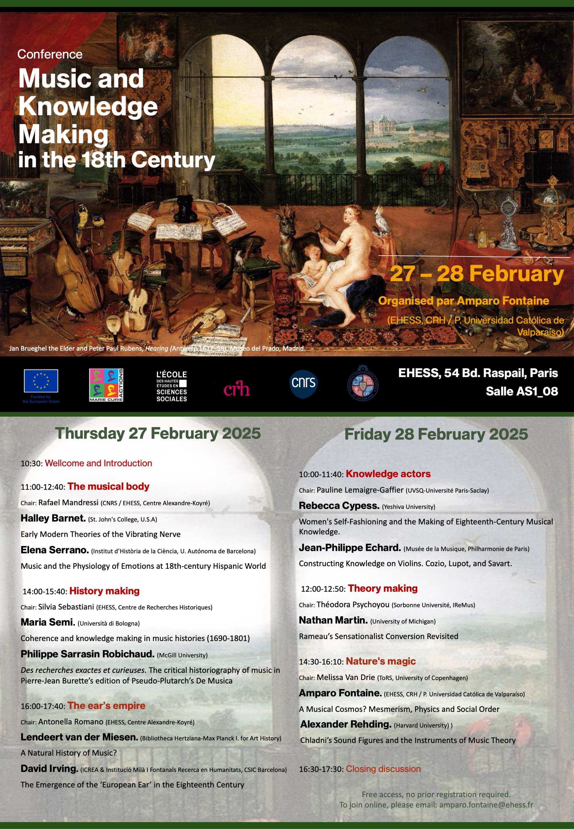 —The two-day international conference Music and Knowledge Making in the Eighteenth Century, hosted at the Centre de Recherches Historiques (EHESS), featured 12 renowned international scholars who are leading experts in their fields.