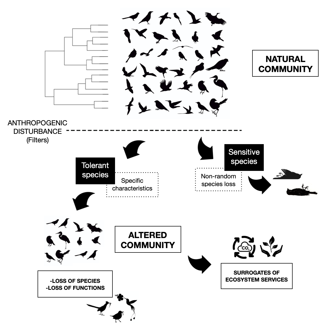 During the second year of ENVIRON_CHANGE, I participated in a book chapter in collaboration with my supervisor. With the aims at describing the role of animal behaviour and life history traits in defining responses to urbanisation, the book chapter is accepted for publication by the Oxford University Press. Also, in the last six months, I have been co-supervising the master thesis of Jon Went, from the ETZ Zürich. Using data on morphological information of birds, land cover and bird abundances from temperate ecosystems in the US, we are developing large-scale spatiotemporal models that integrate legacy effects and life history traits to investigate their complex relationship and consequences to avian biodiversity. The results will generate a scientific paper to be published in a journal of the first quartile. In parallel, I have a new manuscript in prep, which aims at describing the spatiotemporal changes in phylogenetic and functional bird biodiversity across land use change in temperate ecosystems in the US, complementing and accomplishing the main scientific aims of ENVIRON_CHANGE. When finished, the manuscript will be published in a journal of the first quartile.