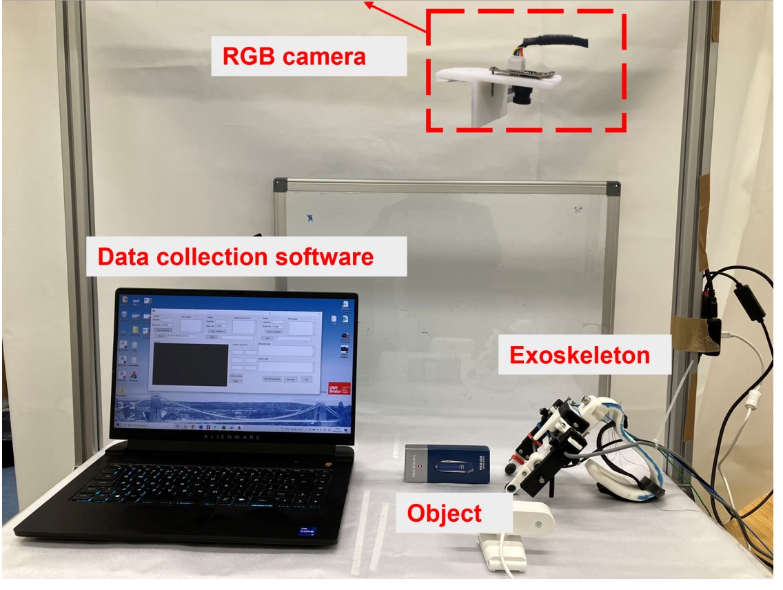 Several improvements have been achieved in the first part. The basic result is the development of a wearable tool-like exoskeleton to measure the movements (positions and gestures) of arms and hand fingers, and an action measurement platform to collect data. The exoskeleton's end grippers choose the same material, size, and range of motion as the robotic grippers to minimize physical differences from human hands. A conference paper has been published on this design and a journal article is under review. For the teleoperation platform, we have investigated adaptive control methods to improve system performance. We also created a primitive skill dataset that includes typical manipulation actions such as grasping, picking up and putting down, reaching targets, and obstacle avoidance from various scenarios