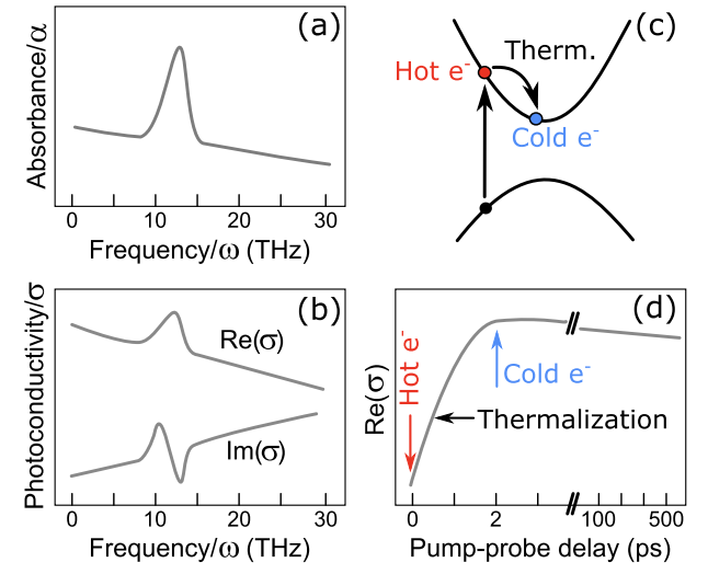 The host group introduced a powerful non-contact AC technique, namely the Time Resolved THz Spectroscopy (TRTS) technique, for studying carrier dynamics in MOFs. In a TRTS experiment, an optical pulse is used to excite the electrons of the semiconducting material from the valence band to the conduction band. Then, a THz pulse transverses the material with an adjustable time delay and due to the sensitivity of THz radiation to free charge carriers, it allows accessing the sample’s complex conductivity in the AC limit, providing precious information on the charge transfer mechanism, charge carrier density and mobility. However, one of the most important drawbacks for the study of optical phonons using traditional electro-optic crystals for the THz emission is their limited bandwidth, usually covering frequency windows of not more than ~0.1-2THz. This limits substantially the amount of information one can harvest from TRTS experiments, since it does not allow the characterization of IR-active lattice vibrations (phonons), which usually extend in the frequency range between 60 cm-1 and 500 cm-1.